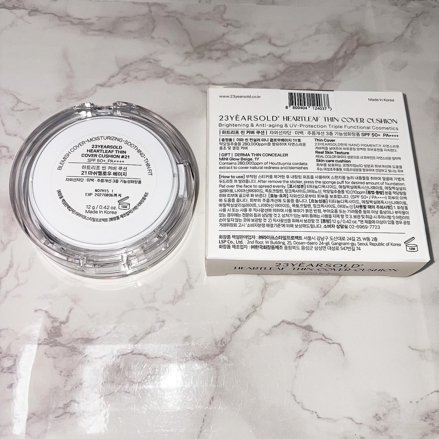 エッセンス含量65%、ドクダミ10,000ppm 含有のスキンケアクッション🍃セミマット質感で、少量でもカバーしてくれる! おまけでミニコンシーラーもついてたよ🫶