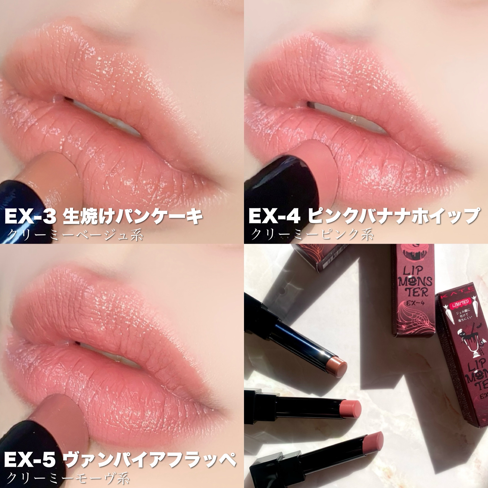 - 落ちにくさも美発色もよくばりたい、つけたての色が長時間持続する人気の口紅リップモンスター。 唇から蒸発する水分を活用して密着ジェル膜に変化する独自技術※で、つけたての色が長時間持続。 高発色&保湿。 ※当社独自の色持ち技術 ■花火のようにまぶしくきらめく 繊細なラメが際立つ限定色 EX-6 ピンクカラー×青ラメ【ロケット花火流星群】 EX-7 オレンジカラー×黄&緑ラメ【100万発の線香花火】 EX-8 レッドカラー×緑ラメ【打ち上げ花火ブランコ】 ■深みレッド系カラーの限定色 EX-9 戦慄の喜笑 (限定色) EX-10 狂気の怒号 (限定色) 【2025クリスマスコフレ】 落ちにくいリップモンスターから、唇の血色感を底上げする ホリデーシーズン限定の熱感ニュアンスベージュ系カラー登場。 EX-11 紅煙宿る贈り物(限定色):ボルドーベージュ系 EX-12 盗まれた1224mの星光(限定色):キャメルベージュ系