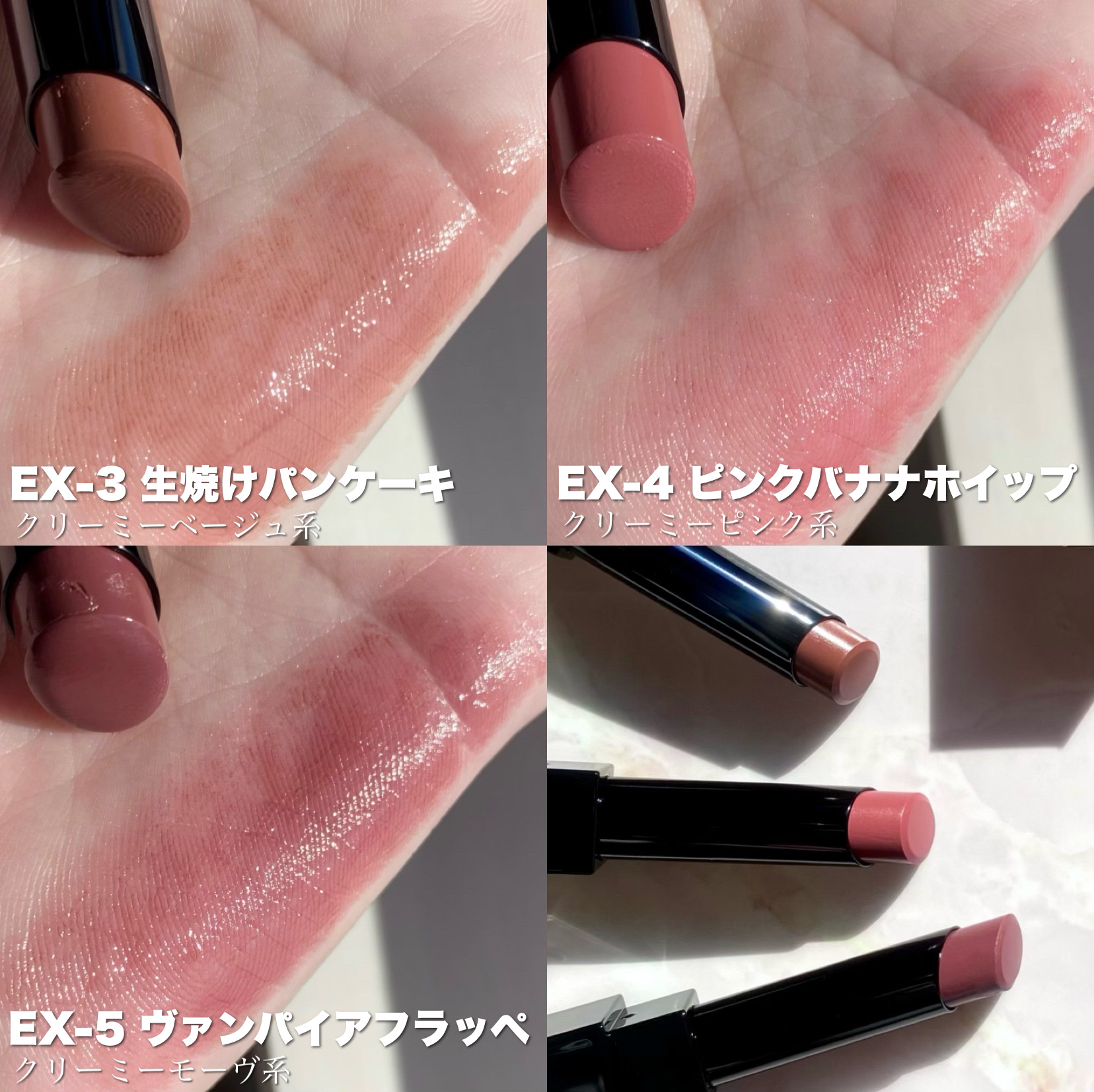 - <01 欲望の塊> テトライソステアリン酸ジペンタエリスリチル、トリ(カプリル酸/カプリン酸)グリセリル、オクチルドデカノール、ラウロイルグルタミン酸ジ(フィトステリル/オクチルドデシル)、ビスアルキル(C16-18)グリセリルウンデシルジメチコン、イソノナン酸イソトリデシル、水添ポリイソブテン、ラウロイルグルタミン酸ジ(オクチルドデシル/フィトステリル/ベヘニル)、パラフィン、合成ワックス、ダイマージリノール酸(フィトステリル/イソステアリル/セチル/ステアリル/ベヘニル)、マイクロクリスタリンワックス、水添マイクロクリスタリンワックス、ヒドロキシステアリン酸エチルヘキシル、トコフェロール、ホホバ種子油、オリーブ果実油、アーモンド油、(エチレン/プロピレン)コポリマー、ポリエチレン、ジメチコン、(+/-)(チタン/酸化チタン)焼結物、マイカ、ラウロイルアスパラギン酸Na、ラウロイルリシン、塩化亜鉛、酸化チタン、酸化鉄、水酸化Al、硫酸Ba、トリイソステアリン酸イソプロピルチタン、酸化スズ、ホウケイ酸(Ca/Al)、合成フルオロフロゴパイト、黄4、黄5、赤104(1)、赤201、赤202 <02 ピンクバナナ> テトライソステアリン酸ジペンタエリスリチル、トリ(カプリル酸/カプリン酸)グリセリル、オクチルドデカノール、ラウロイルグルタミン酸ジ(フィトステリル/オクチルドデシル)、ビスアルキル(C16-18)グリセリルウンデシルジメチコン、イソノナン酸イソトリデシル、水添ポリイソブテン、ラウロイルグルタミン酸ジ(オクチルドデシル/フィトステリル/ベヘニル)、パラフィン、合成ワックス、ダイマージリノール酸(フィトステリル/イソステアリル/セチル/ステアリル/ベヘニル)、マイクロクリスタリンワックス、水添マイクロクリスタリンワックス、ヒドロキシステアリン酸エチルヘキシル、トコフェロール、ホホバ種子油、オリーブ果実油、アーモンド油、(エチレン/プロピレン)コポリマー、ポリエチレン、ジメチコン、(+/-)(チタン/酸化チタン)焼結物、マイカ、ラウロイルアスパラギン酸Na、ラウロイルリシン、塩化亜鉛、酸化チタン、酸化鉄、水酸化Al、硫酸Ba、トリイソステアリン酸イソプロピルチタン、酸化スズ、ホウケイ酸(Ca/Al)、合成フルオロフロゴパイト、黄4、黄5、赤104(1)、赤201、赤202 <03 陽炎> テトライソステアリン酸ジペンタエリスリチル、トリ(カプリル酸/カプリン酸)グリセリル、オクチルドデカノール、ラウロイルグルタミン酸ジ(フィトステリル/オクチルドデシル)、ビスアルキル(C16-18)グリセリルウンデシルジメチコン、イソノナン酸イソトリデシル、水添ポリイソブテン、ラウロイルグルタミン酸ジ(オクチルドデシル/フィトステリル/ベヘニル)、パラフィン、合成ワックス、ダイマージリノール酸(フィトステリル/イソステアリル/セチル/ステアリル/ベヘニル)、マイクロクリスタリンワックス、水添マイクロクリスタリンワックス、ヒドロキシステアリン酸エチルヘキシル、トコフェロール、ホホバ種子油、オリーブ果実油、アーモンド油、(エチレン/プロピレン)コポリマー、ポリエチレン、ジメチコン、(+/-)(チタン/酸化チタン)焼結物、マイカ、ラウロイルアスパラギン酸Na、ラウロイルリシン、塩化亜鉛、酸化チタン、酸化鉄、水酸化Al、硫酸Ba、トリイソステアリン酸イソプロピルチタン、酸化スズ、ホウケイ酸(Ca/Al)、合成フルオロフロゴパイト、黄4、黄5、赤104(1)、赤201、赤202 <04 パンプキンワイン> テトライソステアリン酸ジペンタエリスリチル、トリ(カプリル酸/カプリン酸)グリセリル、オクチルドデカノール、ラウロイルグルタミン酸ジ(フィトステリル/オクチルドデシル)、ビスアルキル(C16-18)グリセリルウンデシルジメチコン、イソノナン酸イソトリデシル、水添ポリイソブテン、ラウロイルグルタミン酸ジ(オクチルドデシル/フィトステリル/ベヘニル)、パラフィン、合成ワックス、ダイマージリノール酸(フィトステリル/イソステアリル/セチル/ステアリル/ベヘニル)、マイクロクリスタリンワックス、水添マイクロクリスタリンワックス、ヒドロキシステアリン酸エチルヘキシル、トコフェロール、ホホバ種子油、オリーブ果実油、アーモンド油、(エチレン/プロピレン)コポリマー、ポリエチレン、ジメチコン、(+/-)(チタン/酸化チタン)焼結物、マイカ、ラウロイルアスパラギン酸Na、ラウロイルリシン、塩化亜鉛、酸化チタン、酸化鉄、水酸化Al、硫酸Ba、トリイソステアリン酸イソプロピルチタン、酸化スズ、ホウケイ酸(Ca/Al)、合成フルオロフロゴパイト、黄4、黄5、赤104(1)、赤201、赤202 <05 ダークフィグ> テトライソステアリン酸ジペンタエリスリチル、トリ(カプリル酸/カプリン酸)グリセリル、オクチルドデカノール、ラウロイルグルタミン酸ジ(フィトステリル/オクチルドデシル)、ビスアルキル(C16-18)グリセリルウンデシルジメチコン、イソノナン酸イソトリデシル、水添ポリイソブテン、ラウロイルグルタミン酸ジ(オクチルドデシル/フィトステリル/ベヘニル)、
