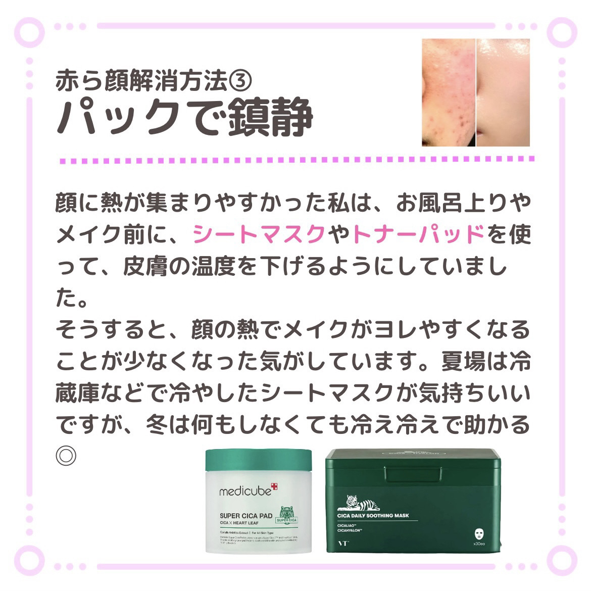私は、顔に熱が集まったように赤くなってしまうことが多いタイプでした。 その時に1番効果があったと感じるのが自律神経を整えることです! 地道な努力に感じるかもしれませんが、少しずつ体質改善ができるはず…!