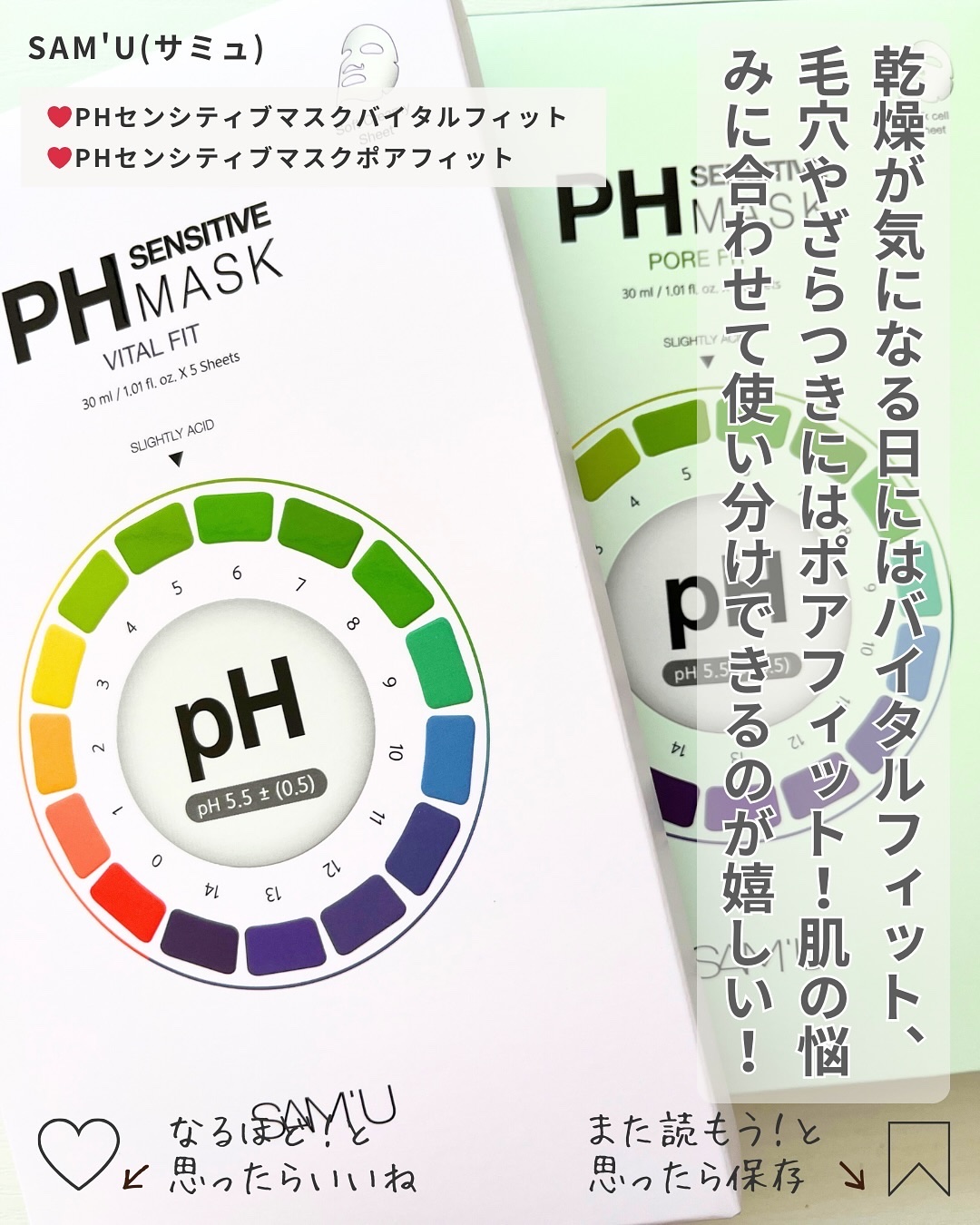 [SAM'Uおすすめシートマスク]▶︎SAM'U▷PHマスクパック ポアフィット/トーンアップフィット/バイタルフィット💚ポアフィット→毛穴・肌キメ🧡トーンアップフィット→透明感・トーンアップ💜バイタルフィット→ハリ・弾力肌悩みに合わ...