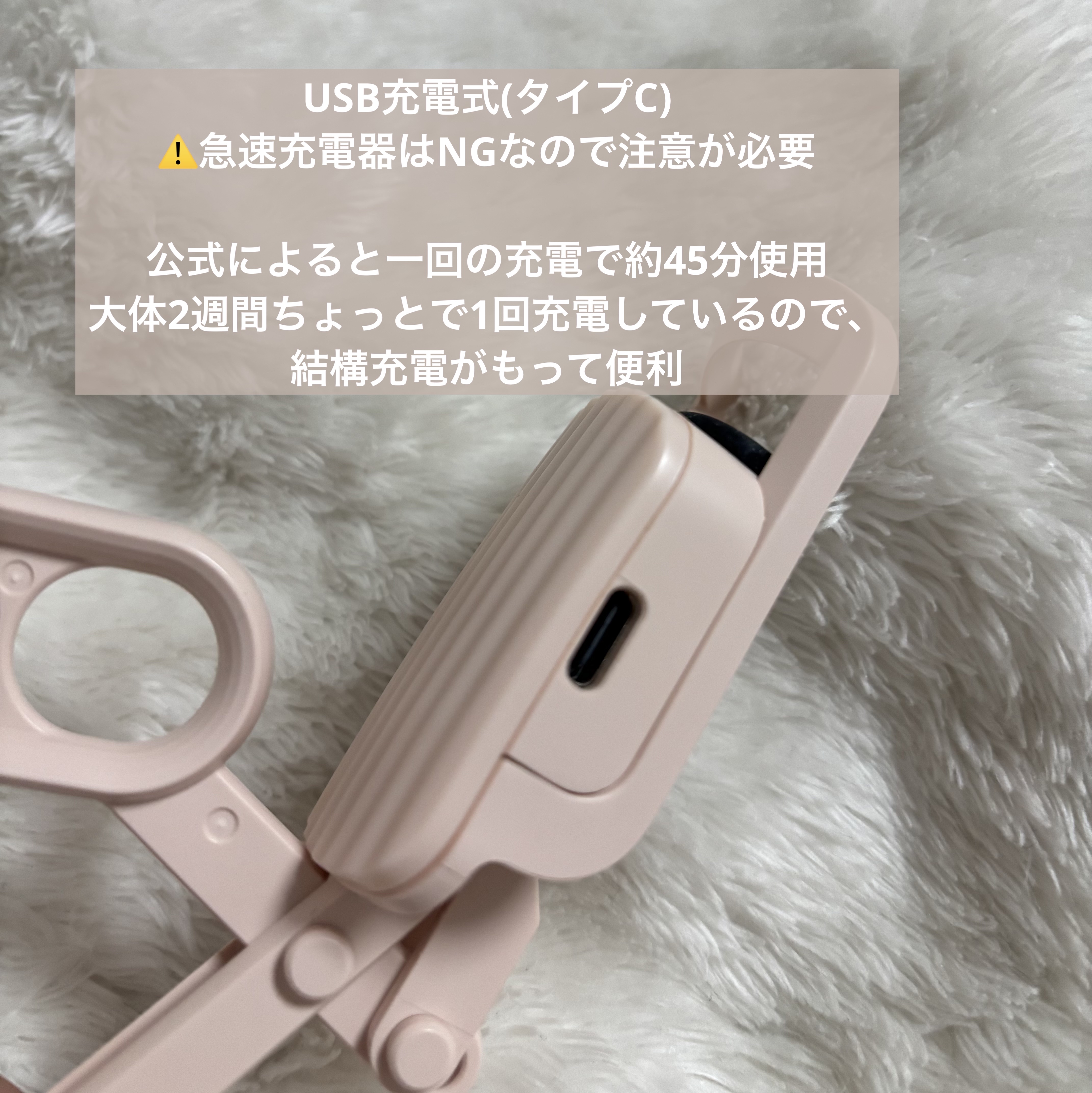 - はさんだまつげを熱でしっかりカール。 一般的なカーラーの形でヒートカーラー初心者の方にも使いやすい仕様です。 指の力と熱のダブル効果でまつげがしっかり上がります。 また、本商品はUSB充電式で、1回の充電で約45分使用可能です。 オートオフ機能付なので消し忘れの心配もありません。