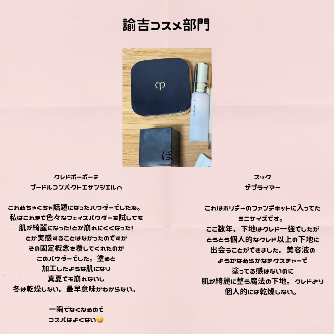 コスメ好きが高じて大量にコスメを買っているのに発信する時間がなくて出来ていませんでしたが 少しずつ子育ても落ち着いてきたのでメモがわりも兼ねて更新します! 遅くなりすぎましたがまずは昨年のベスコス… 力尽きたのでプチプラその他は違う投稿でまとめます!