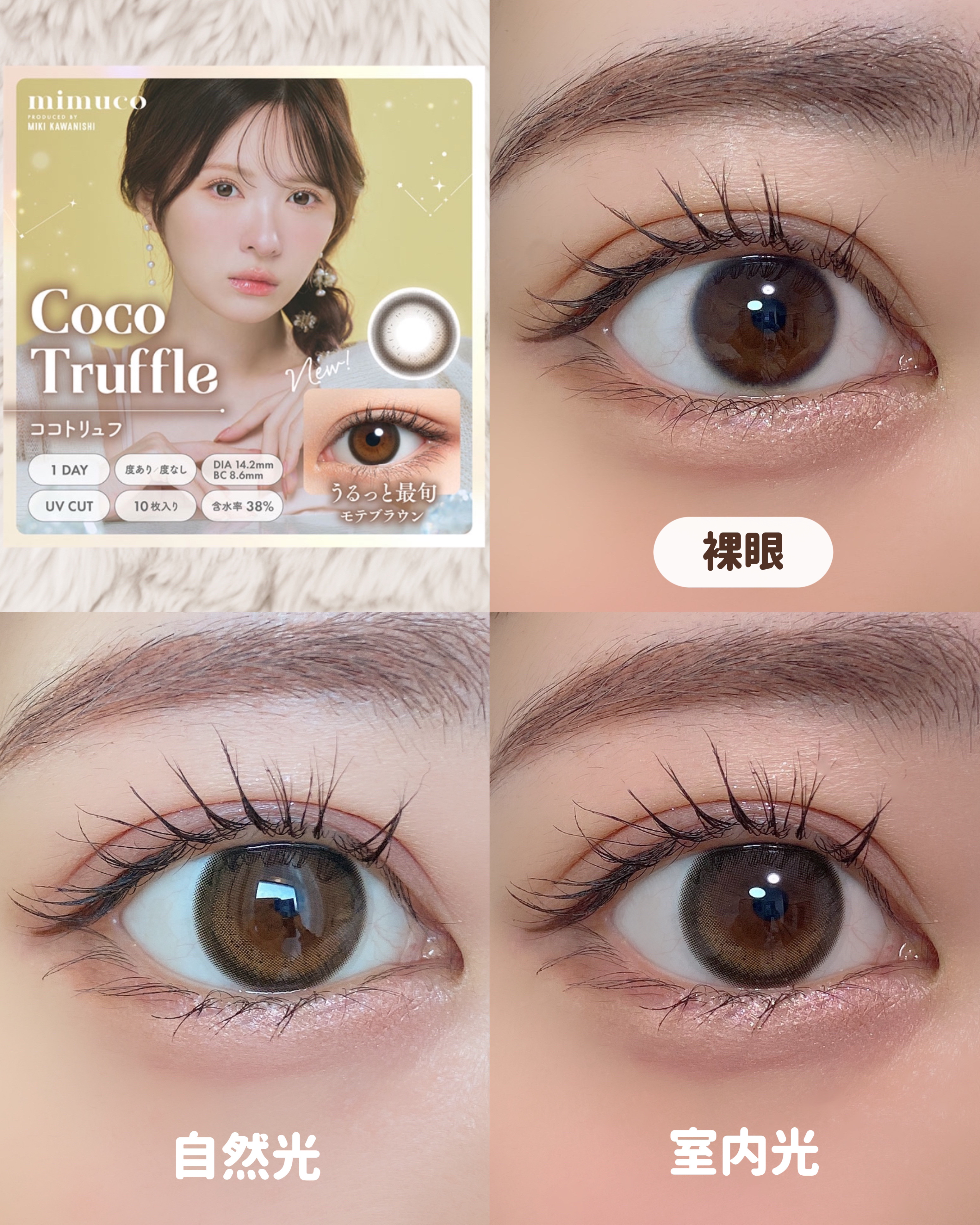 - ※2025年6月以降、商品パッケージ裏面・側面の一部表記を順次変更いたします。尚、これにかかる商品の交換・返品は承っておりません。 裸眼の色が明るい「茶目さん」、暗めな「黒目さん」、どちらの瞳の方が着けても不自然にならずあか抜けるレンズ。 日常使いしやすいブラウンベースのレンズをはじめ、肩ひじ張らずに可愛くなれるナチュラルなレンズとなっております。 ■mimuco ふんわり透明感セット キャラメルスフレ/ブラウンフォンデュ/メープルミルクティー/ポムカヌレ(各2枚入り) ■mimucoちゅるん透明感セット ゼリーグレー/シュガードーナツ/メローストロベリー/ピュレグレージュ(各2枚入り) カラーコンタクトレンズの不適正使用による眼障害の危険性等などがあります。 ●コンタクトレンズは高度管理医療機器です。不十分な洗浄・消毒など不適切なケアや、長時間・交換期間を超えた装用により、アレルギー性結膜炎、角膜感染症、角膜潰瘍等の重篤な眼障害が発生する危険性があります ●ご使用前に取扱説明書を確認してください 使用上の留意事項 ●眼科医院等を受診してからお求めください ●眼に異常を感じたら直ちにレンズ使用を中止し、お近くの眼科等で診察を受けてください ●医師の指示にしたがってご使用ください ●コンタクトレンズを装用する場合、自覚症状がなくても、眼科医院等での定期検査を受けてください ●レンズに不具合がある場合は使用しないでください