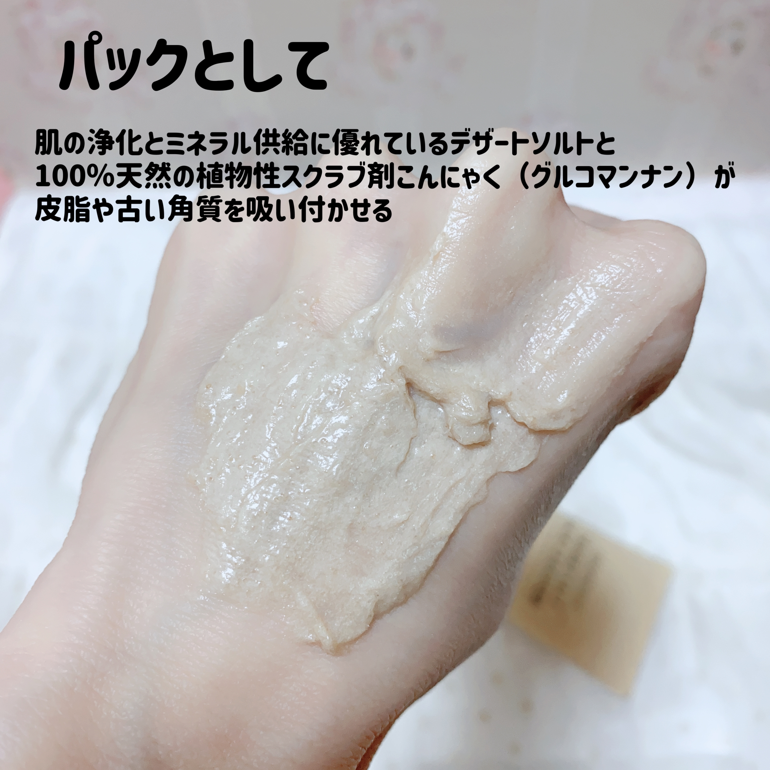 こちらはパックとクレンジングを同時に行えるクレンザー 敏感肌使用適合テスト&皮膚刺激テスト完了🍀 肌の浄化とミネラル供給に優れているデザートソルトと共に配合されているのは天然スクラブ剤とも言うべきこんにゃく粒💡 保湿力に優れたデザートローズエキスを90%配合したミストは、ベルガモットの爽やかなシトラスの香り💛