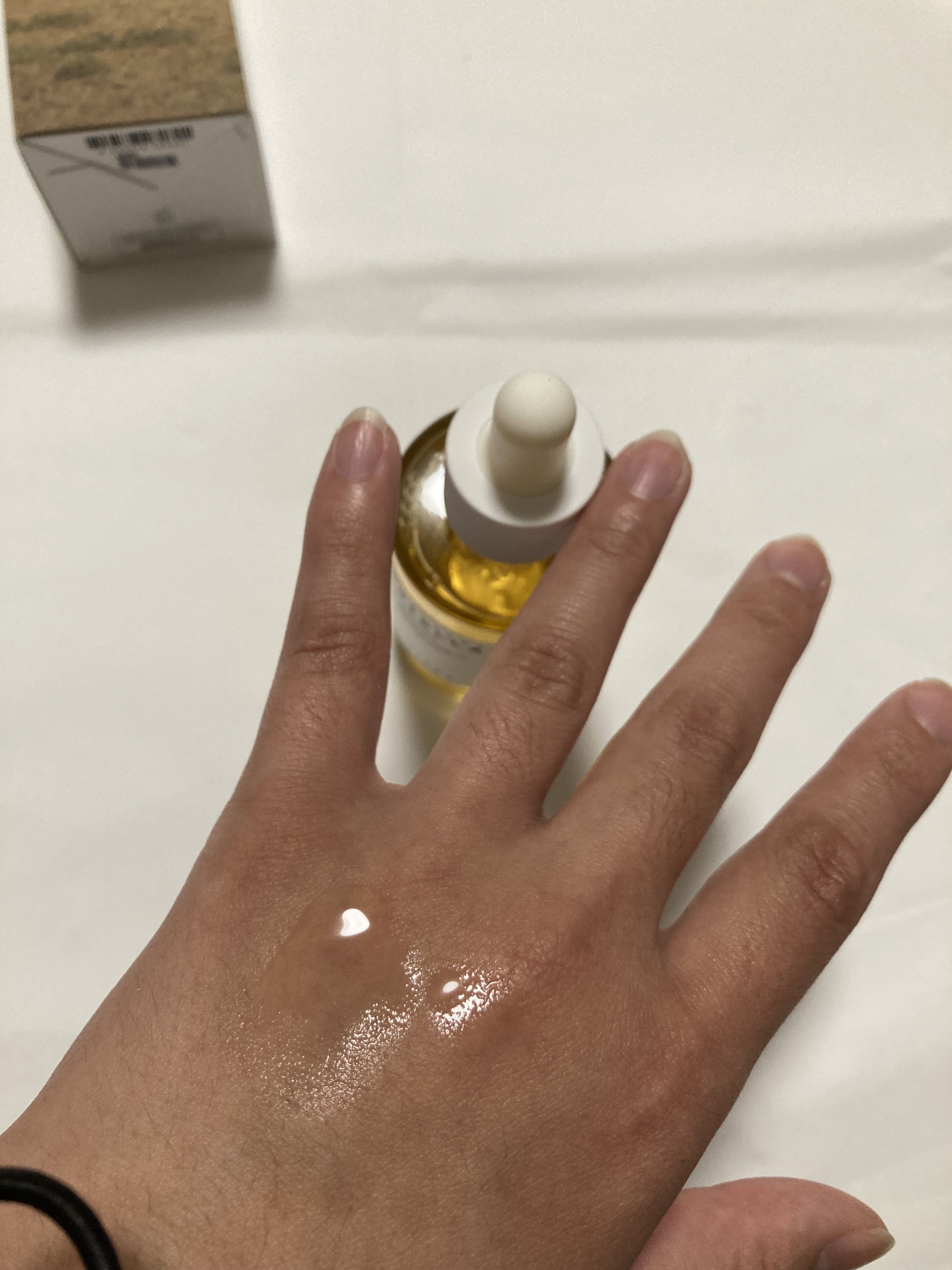 肌が敏感で荒れがちな時期にぴったりのアイテムだと思います。テクスチャはさらっとしていて、思った以上に軽い使い心地。ベタつきが全くなく、肌にのせるとスーッと馴染んでいく感じです。 使った直後は肌がしっとりして、表面が柔らかくなったように感じました。私は特に頬が乾燥しやすいのですが、このアンプルを使うと肌がもちっとして、水分が補われた感覚があります。 重ね付けしても軽い仕上がりなので、スキンケアの最後にクリームを足してもしっかり馴染んでくれます。