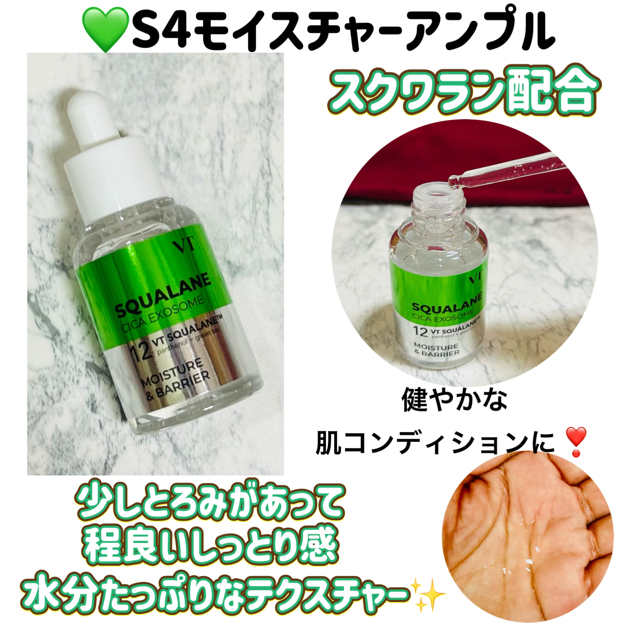 VT独自のCICAエクソソーム配合で毎日使用可で悩み別に5種類から選べ、レイヤリングも出来る✨ 私はパパッと終わらせたい時にでも保湿命‼️なので💙ヒアルロン酸✖️💚スクワランのレイヤリング✨ しかもしかも今なら、Qoo10メガ割で1+1でお得に買えるチャンス😭💕