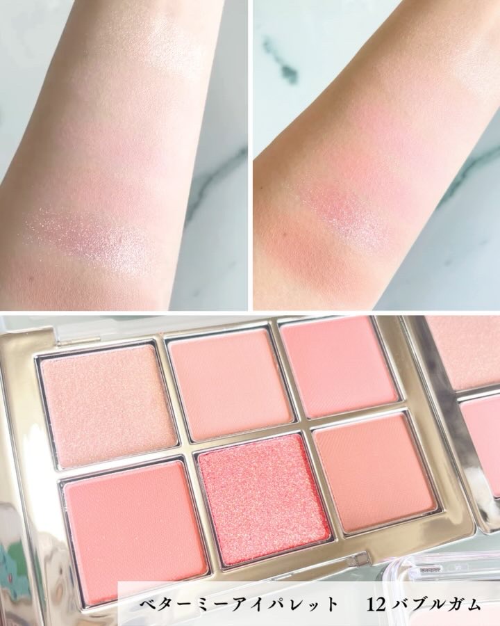繊細で暖かいムードを演出するイエベのためのライトトーンアイパレット🙋 シャドウ、アイライン、涙袋まで一つのパレットで完成するマルチューズパレット☁️ 水分感のあるしっとりしたハイライターで凹凸なく肌に滑らかに密着😌 微細なパールの粒子含有でもともとの自分の肌のようにしっとり浮かび上がるツヤ。 暖かく明るいカラーで多幸感あふれるメイクに💗💫 ハイライトのpeach beamが特にお気に入りでこんなに肌馴染みいいハイライト初めて!!!