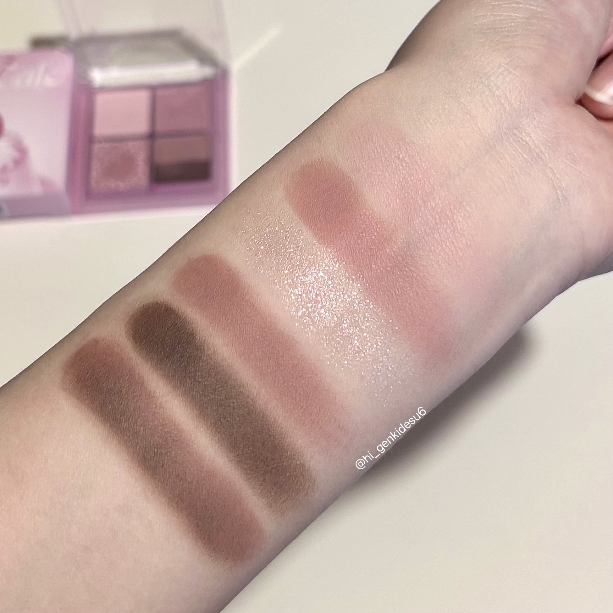 ぬるい温度のヌーディローズ。落ち着いた独特の雰囲気。公式写真だと青み寄りのローズピンクに見えましたが、私の肌だとアプリコットオレンジのような発色に。 清楚なラベンダーとミュートピンク。こちらは期待通りのクールトーンカラーでした! 白みのある発色で、塗った箇所がぱっと明るくなります。 簡単に統一感のあるメイクができてとっても優秀。色々な質感を試せますし、マルチに使用できるので1つでかなり活用度が高いパレットだと思います✨️