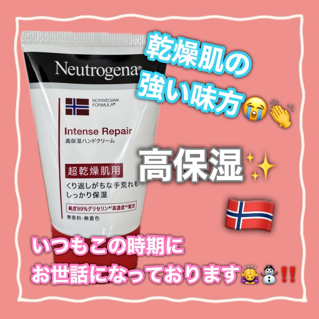 Neutrogenaのインテンスリペア ハンドクリームです ノルウェー🇳🇴のハンドクリームで、ドラストで購入できます! このハンドクリームの最大の推しポイントは、塗ってもベタつかず、サラサラになること!! 本当に、ベビーパウダー塗った後並みのサラサラになりつつ、保湿してくれるので、本当におすすめです! 匂いがしないので、香りがあるのは苦手な方、香水を使用している方にもめちゃくちゃおすすめな商品です