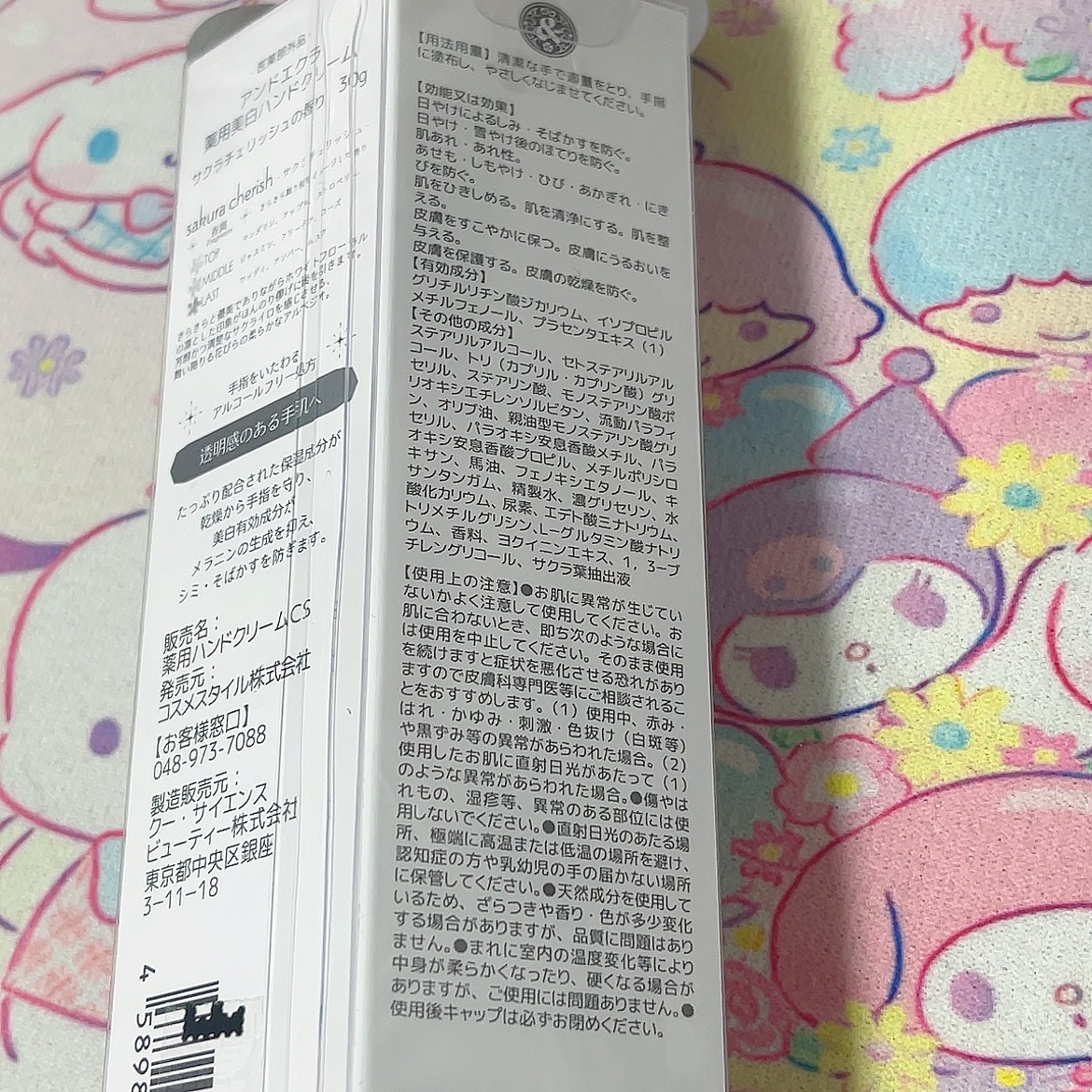 アンドエクラ薬用美白ハンドクリーム薬用美白ハンドクリームサクラチェリッシュの香り「効能又は効果」日焼けによるシミそばかすを防ぐ。日焼け、雪焼け後のほてりをふせぐ。肌荒れ荒れ性あせも、しもやけ、ひび、あかぎれ、にきびを防ぐ。気になって買ってみた...