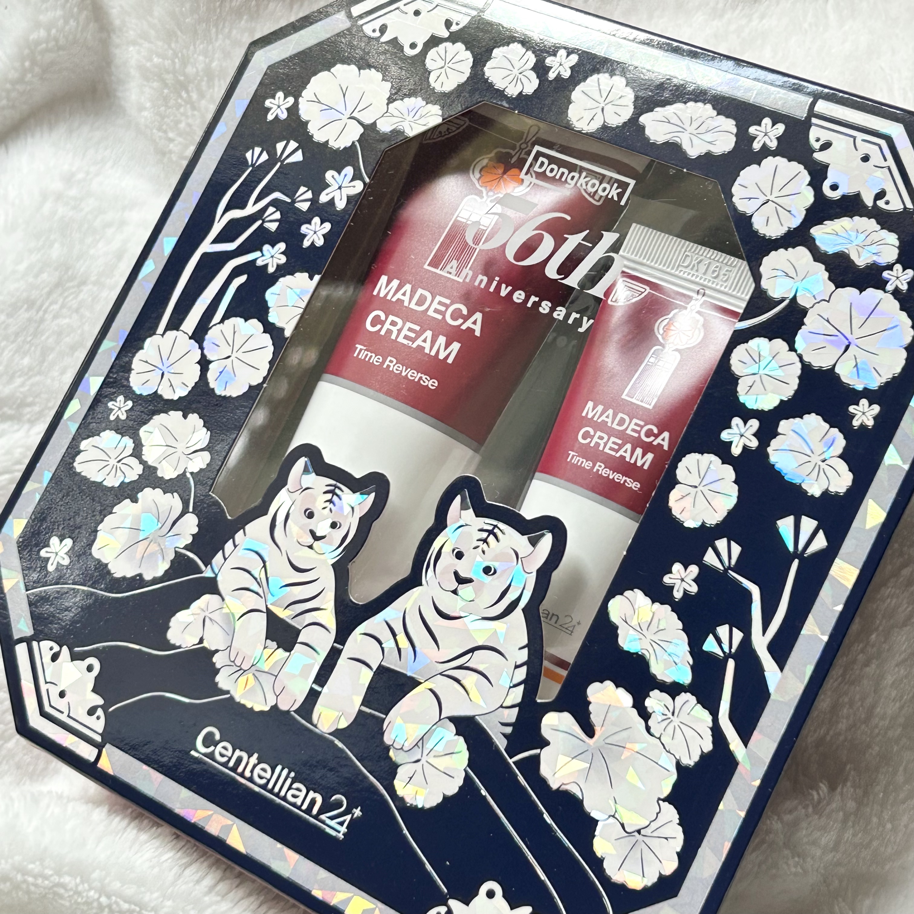 きらきらとしたパッケージに特別感♡ 本体には韓国伝統のデザインが施されてこの時期プレゼントにも自分へのご褒美にぴったりのすてきなデザイン🐅 「ザ・マデカクリーム」は、「マデカソル」の核心成分であるTECAをベースとし、植物性原料の研究開発に力を注ぐ東国製薬が半世紀にわたるノウハウを集約して作られた高機能性クリームということ💡 年齢肌の悩みに寄り添い、最高のパフォーマンスを叶えるトータルエイジングケアクリーム