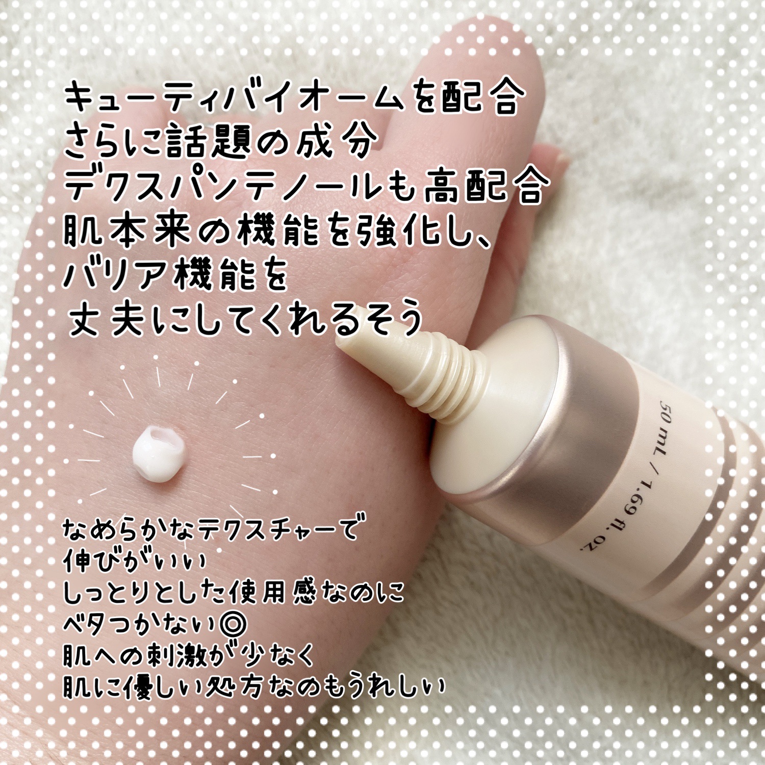 崩れた肌バリアも強く耐える「第4肌バリアクリーム」で、独自特許成分キューティバイオーム™を40%配合。 さまざまな外部刺激からうるおいの盾となる#盾クリームと呼ばれていて、顔だけでなくボディにもマルチに使えることが特徴🛡️ クセのないテクスチャーで使いやすく、柔らかくて伸びが良いのでおすすめのクリームです!