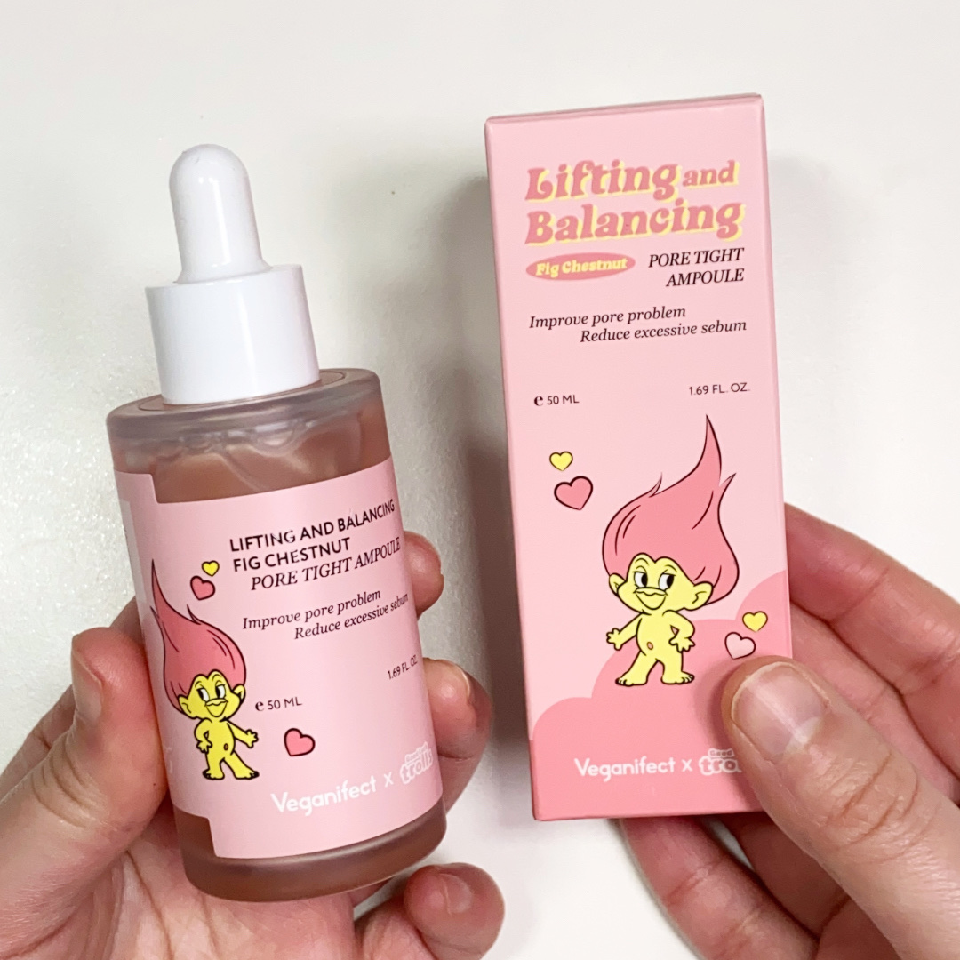 毛穴悩みにおすすめ! Veganifect イチジク毛穴アンプル ¥2,668 テクスチャはとろみがあるよ! 塗ったあとはモチモチ、サラサラなお肌! 4つの毛穴悩みに特化⭐️ 今だけトロールズコラボ!