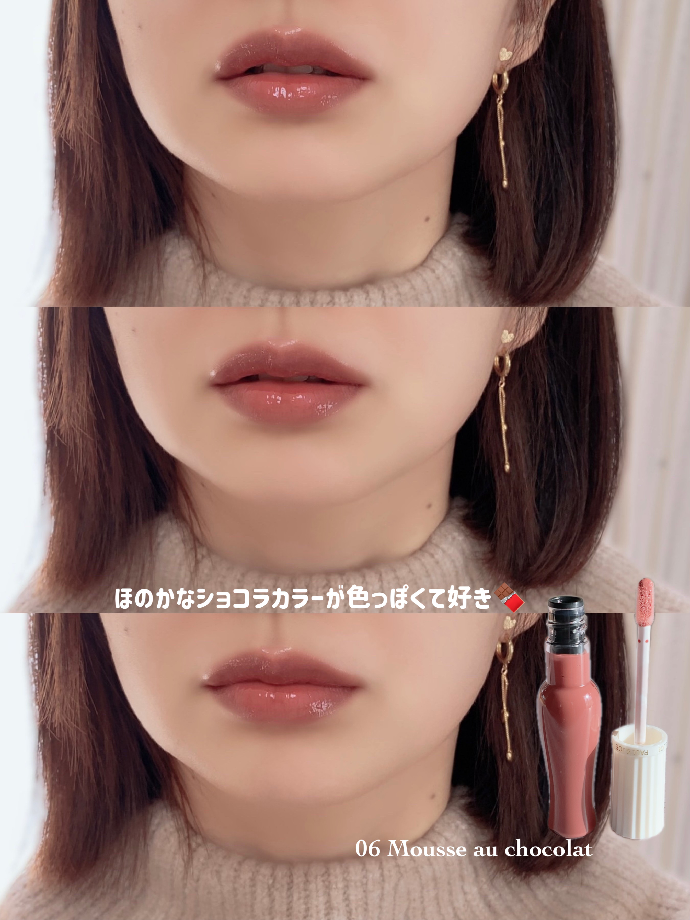 ポルジョの新作は多幸感※溢れるツヤルージュ♡ 唇を擦り合わせると弾力を感じるくらいむっちりとしたつけ心地で、ぷるぷるジューシーな仕上がり。 厚いツヤ膜なのに透けるような発色がめちゃくちゃカワイイ🥰 02は仏語ですみれのジャムという意味のカラーなんだって😘 06は落ち着いたショコラブラウン。クリアで唇との馴染みがいいからすっぴんでも浮かないようなヌーディさ。