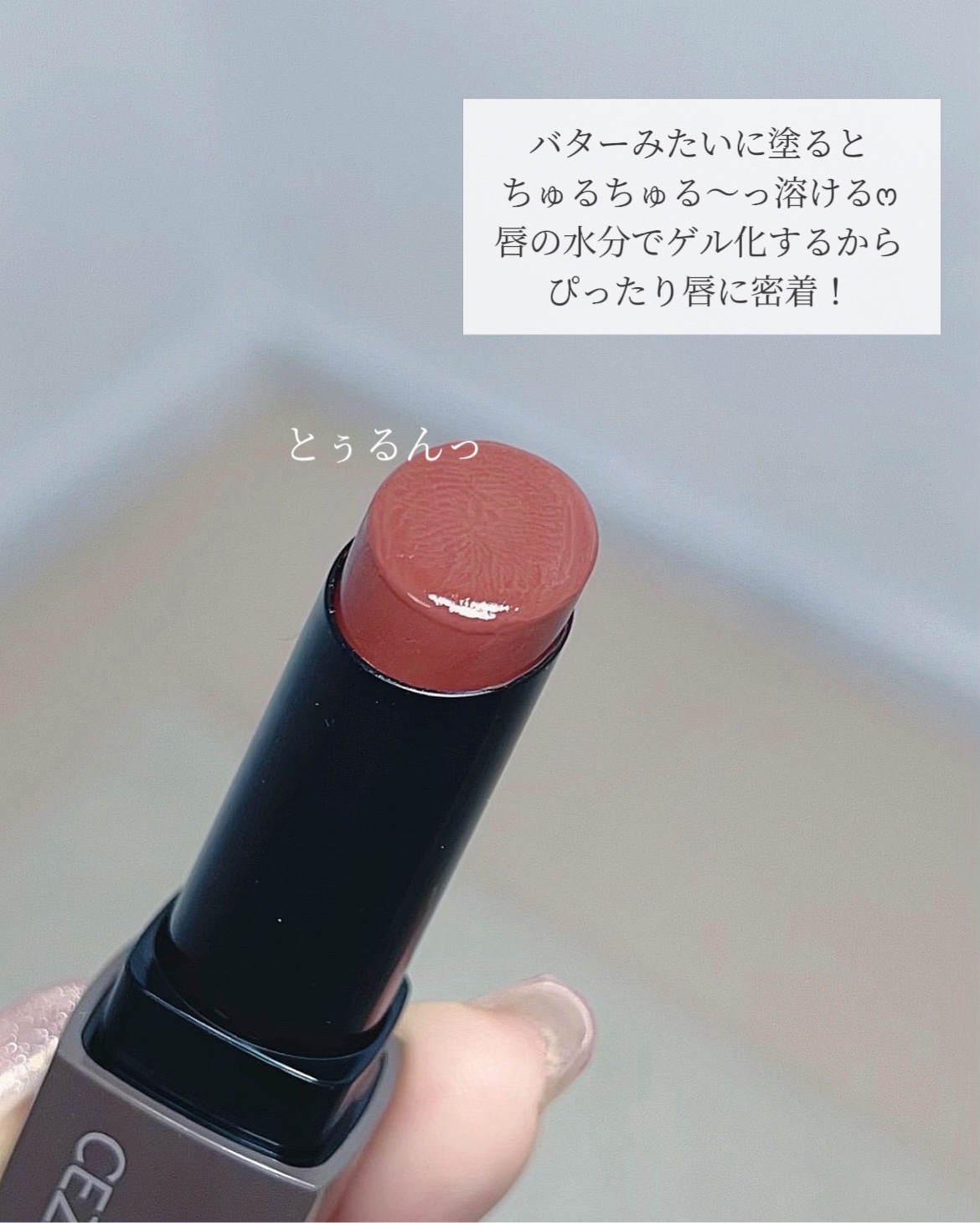 とろけるような塗り心地ときれいな透け感、そして光をたっぷりと集めるツヤ感が特徴✨ 塗り心地が本当に良くて、はみ出しても気にならないちょうど良い発色だからミラーレスでもぐりぐり塗れちゃう♪ 保湿力も高くて乾燥も気になりにくいので今の季節にもとってもおすすめ!