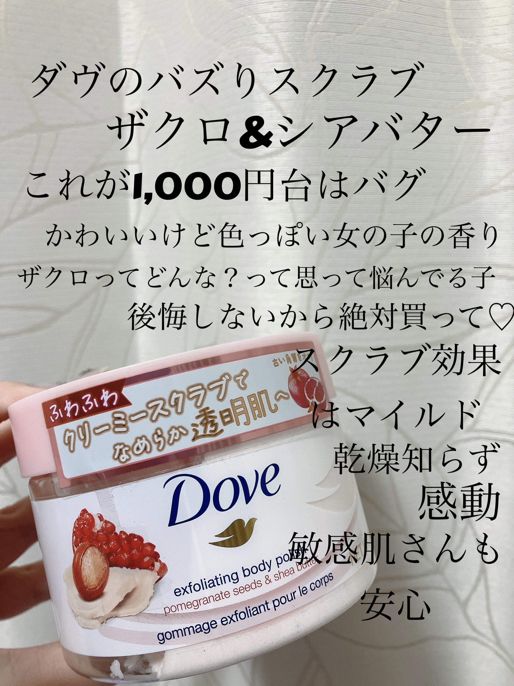 【いい香りすぎやばい】ダヴクリーミースクラブ ザクロ&シアバターぶっちゃけさ、スクラブって優先順位低くない??別に使わんでもまぁ…って感じじゃん??(私だけ?)でも、これ!!!めっっっちゃいい匂いで!!!それだけの理由でもいいから使ってほしい...