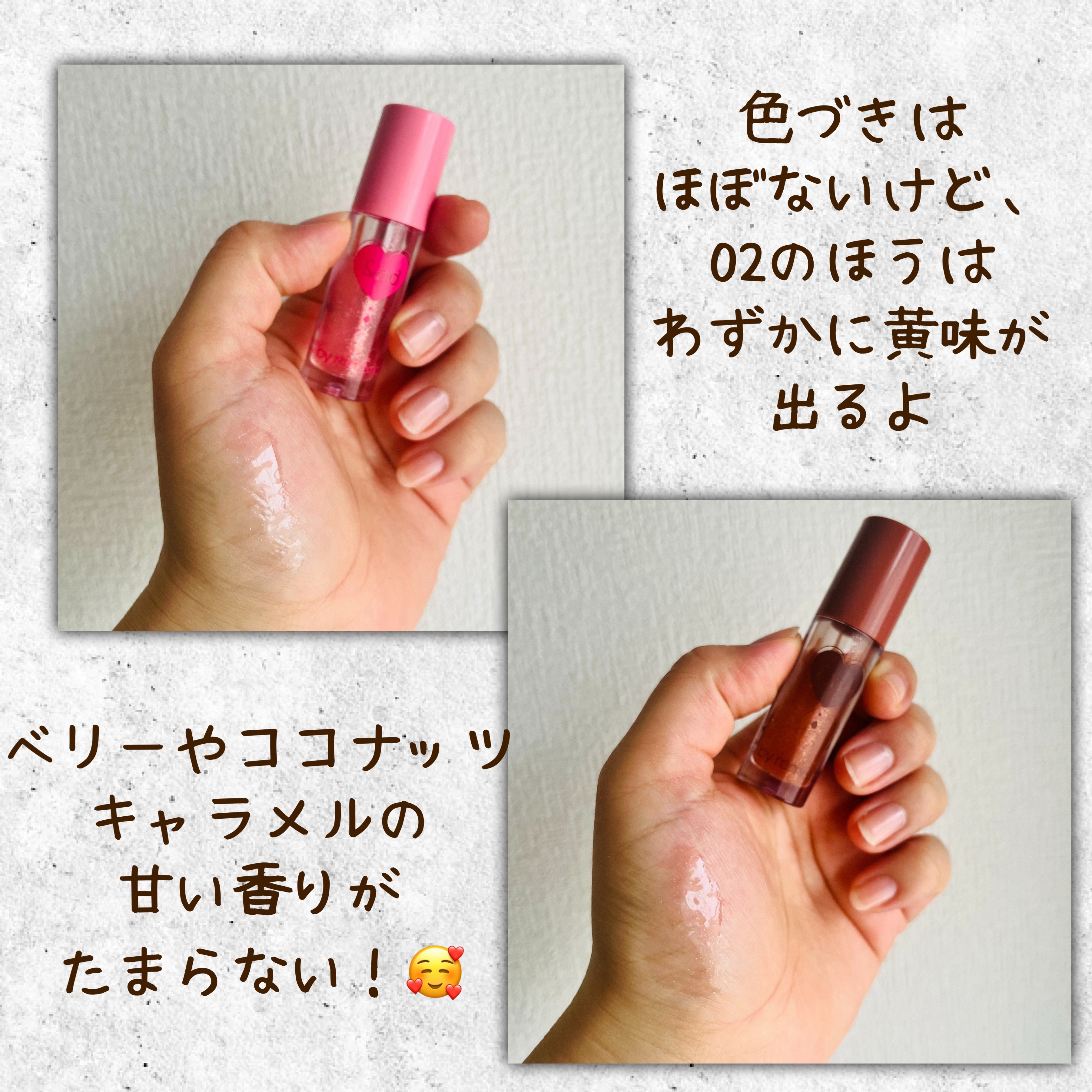 - 〈数量限定〉 今年のバレンタインエディションは、ブランド初となるパール入りグロスが2色登場します。クリアグロスはラメがたくさん入っており、さらにはほんのりいちごとチョコレートとの香りが漂います。つけるだけで心が躍ること間違いなしです。 持ち運びやすいサイズのグロスなので、乾燥しやすいこの季節にポケットやポーチに入れて、いつでも唇にうるおいをチャージできます。