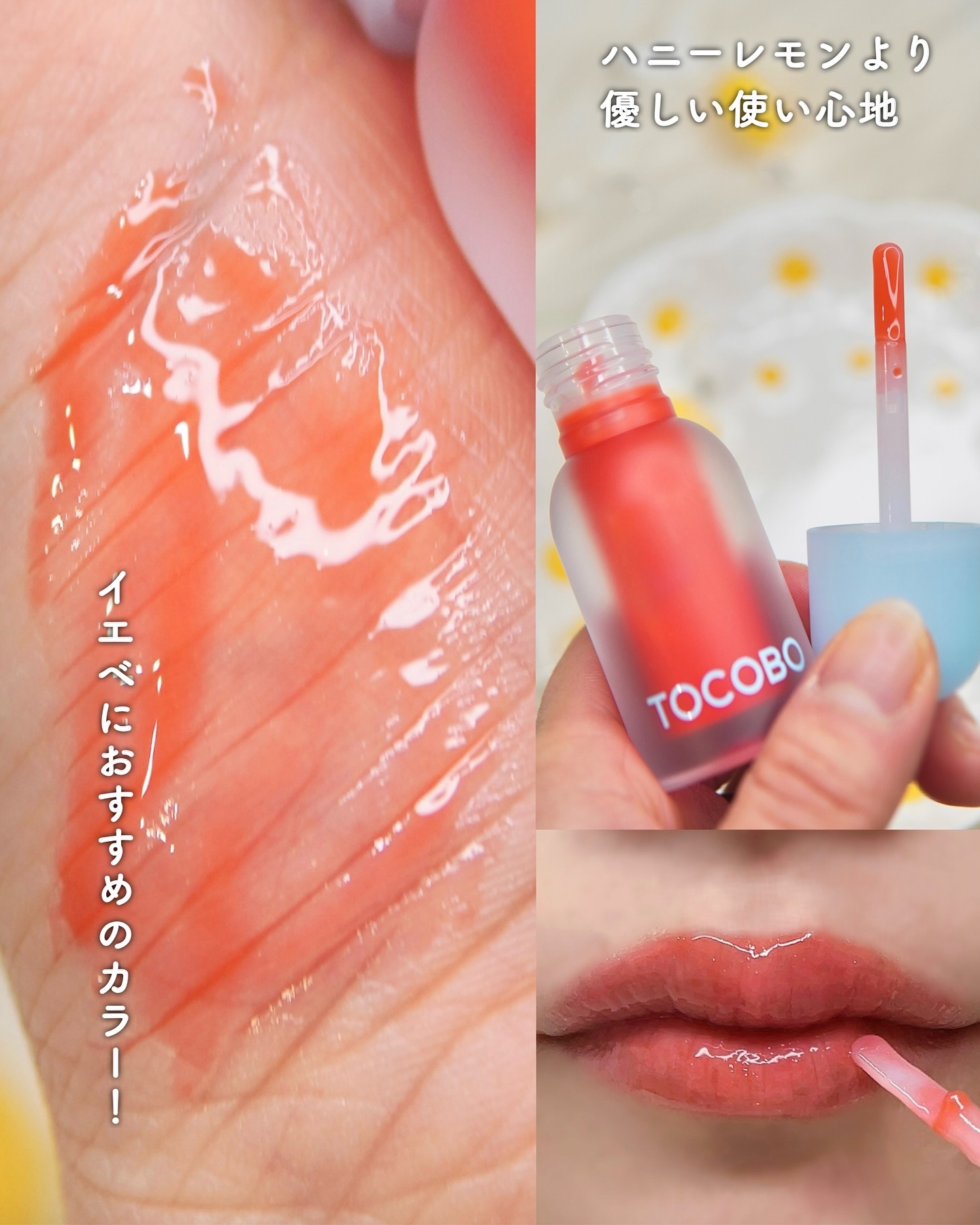 自然由来の高保湿オイルベースで乾燥して弱い唇に強力な保湿力を与えてくれるリップオイルで冬にぴったりなリップ❄️ フルーツを飴でコーティングしたようなちゅるんとした透け感が特徴。手持ちのリップをつけた上から塗っても可愛い🩷 まるでガラス玉のような光沢でウルウル👄 ブランピング効果で、ぷっくり厚みが増すよ!