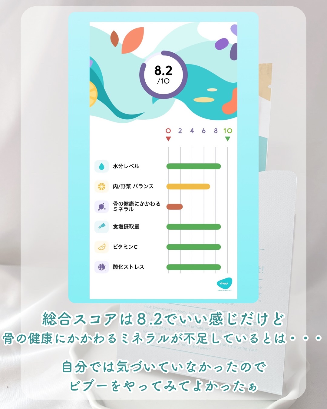 自宅で手軽に栄養管理ができるツール「Vivoo」を使ってみたよ! ヘルステック先進国アメリカで2020年に誕生した「Vivoo」の日本版です。 アプリと専用のストリップがあればいつでも手軽に測定できるし、自分に必要な栄養素を教えてくれるので便利です!