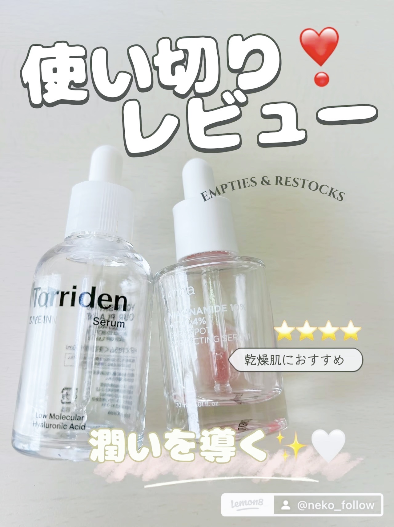 赤色のアヌアの美容液🫧 'ダークスポットセラム'という名前の通りくすみ※1や透明感※2 のケアにおすすめ! 仕上がりの肌がもっちりぷるぷるで乾燥肌の私でも満足の保湿力🥰💓 ナイアシンアミド10%、トラネキサム酸4%、アルブチン2%🫧(全て整肌成分)