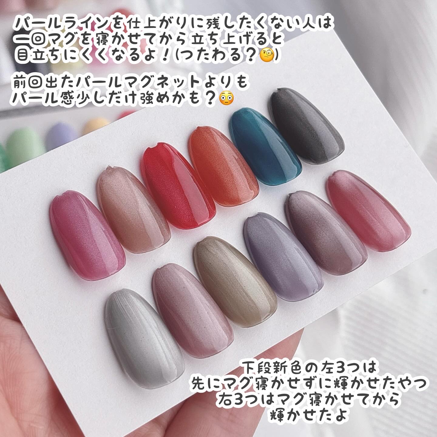 マグネットも同時発売別売りで、 マグネットは1つ100円(税別) マグアートジェルは1本300円(税別)だよ!! マグネットをあてるときらめきが増してすっごくかわいい🥰 そのままでも超超かわいいし、 セリアジェルの『ユニコーンホワイト』とあわせづかいでまた雰囲気が変わるから是非やってみてね!!