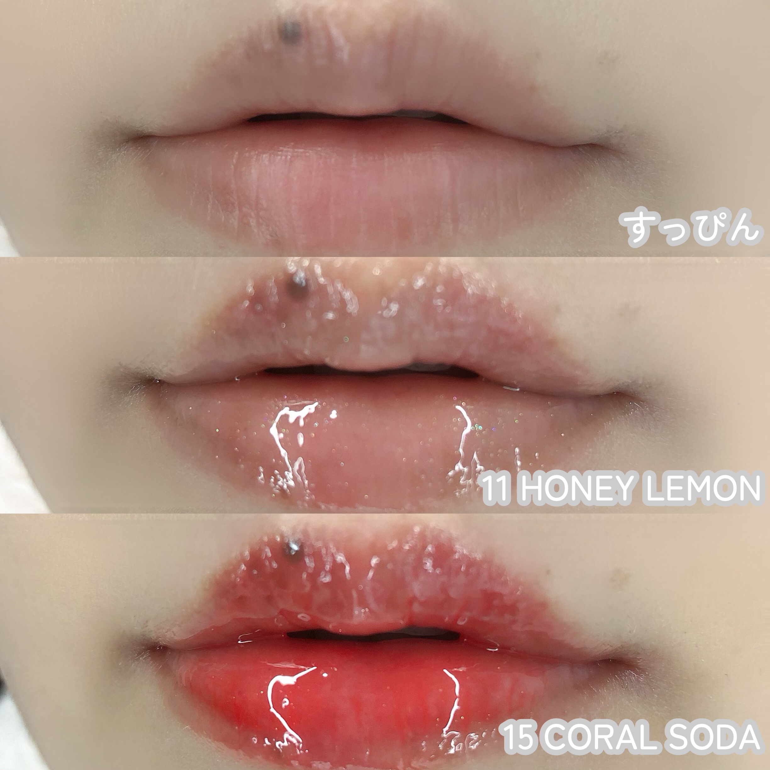 ガラス玉みたいな光沢感とプランパー効果でぷっくり🎀 保湿力もある艶々リップ イエベ春の私のお気に入りは、11と15🩷💕 ころんとしたデザインも、ほんのり甘〜い香りがするのもお気に入り💞