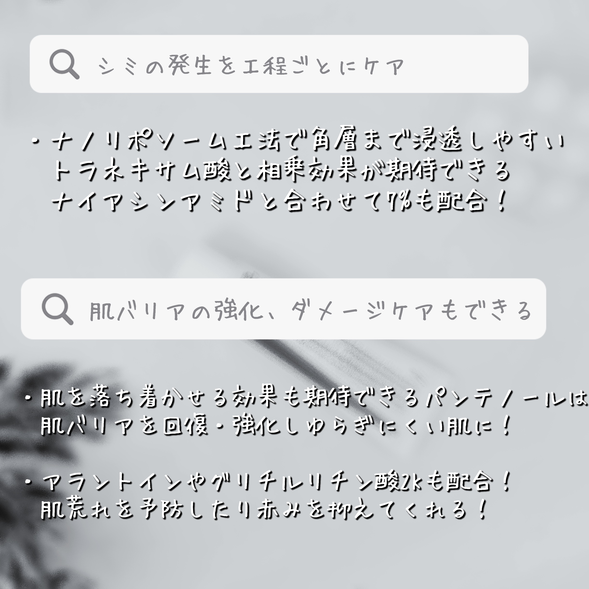 目元のシミが年々気になってきたので、嬉しいシミ対策コスメです✨ シミの飲み薬や注射に使用されるトラネキサム酸配合スキンケア代表作。 ドクターメラクチンだけのリポソーム化したナノトラネキサム酸でより浸透しやすい。