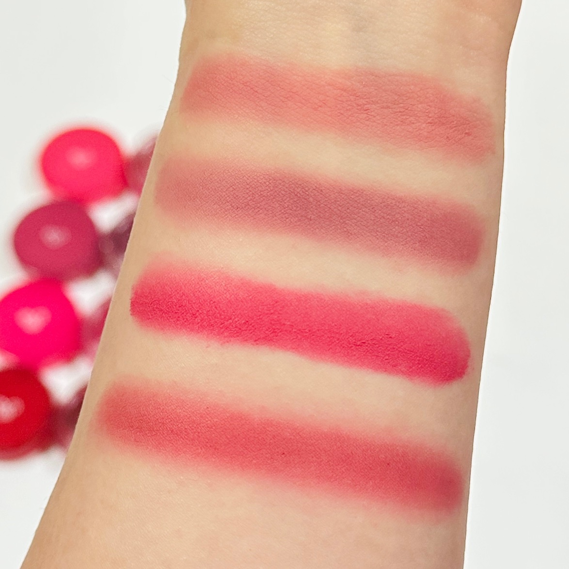 全色レビュー𓈒𓏸AOUマットふわバームෆෆAOUFLOOFYMATTEBALMメガ割適用↪︎¥1,600𓏸warmtone01🪸珊瑚バーム絶妙な彩度のコーラルベージュ02🍂落葉バームカラッと乾かしたビンテージローズ08🌥️夕焼けバーム柔...