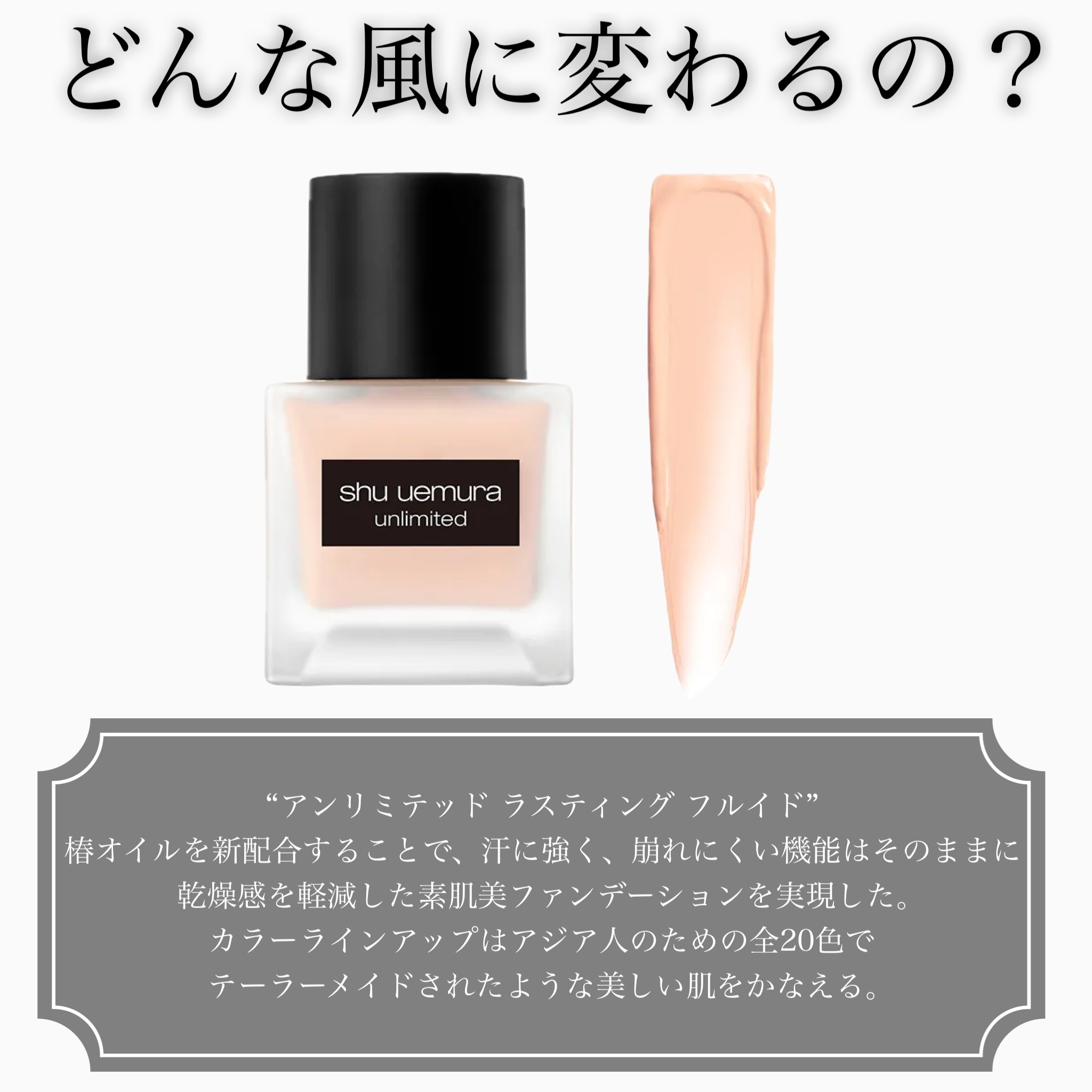 3/3リニューアル.ᐟ.ᐟshuuemura『アンリミテッドラスティングフルイド574』崩れ知らずの名品ファンデがバージョンアップ。薄く、軽く、そして続く。乾燥感のない素肌美ファンデーション。皮脂、汗に強く、崩れにくい機能はそのままに乾...
