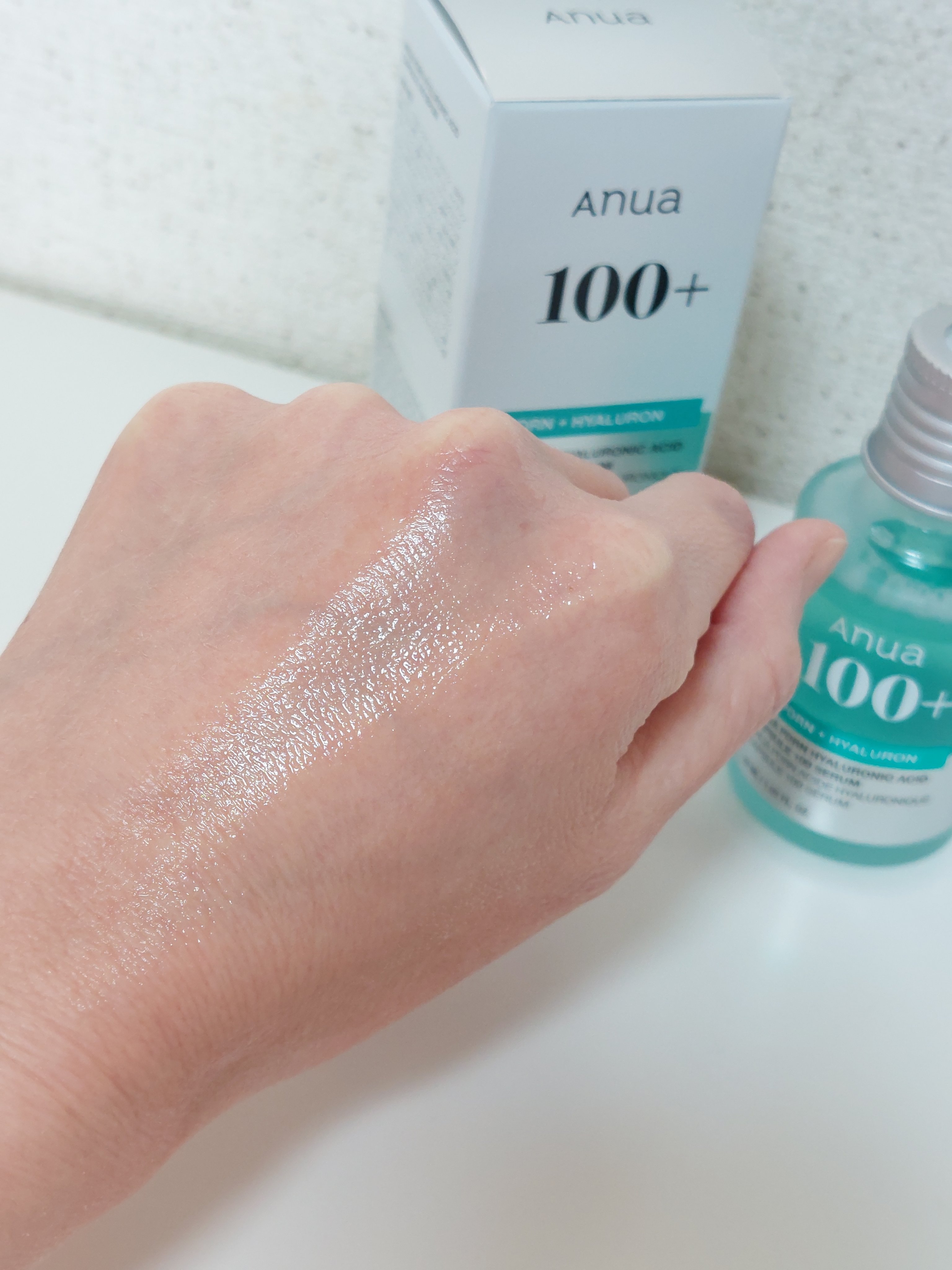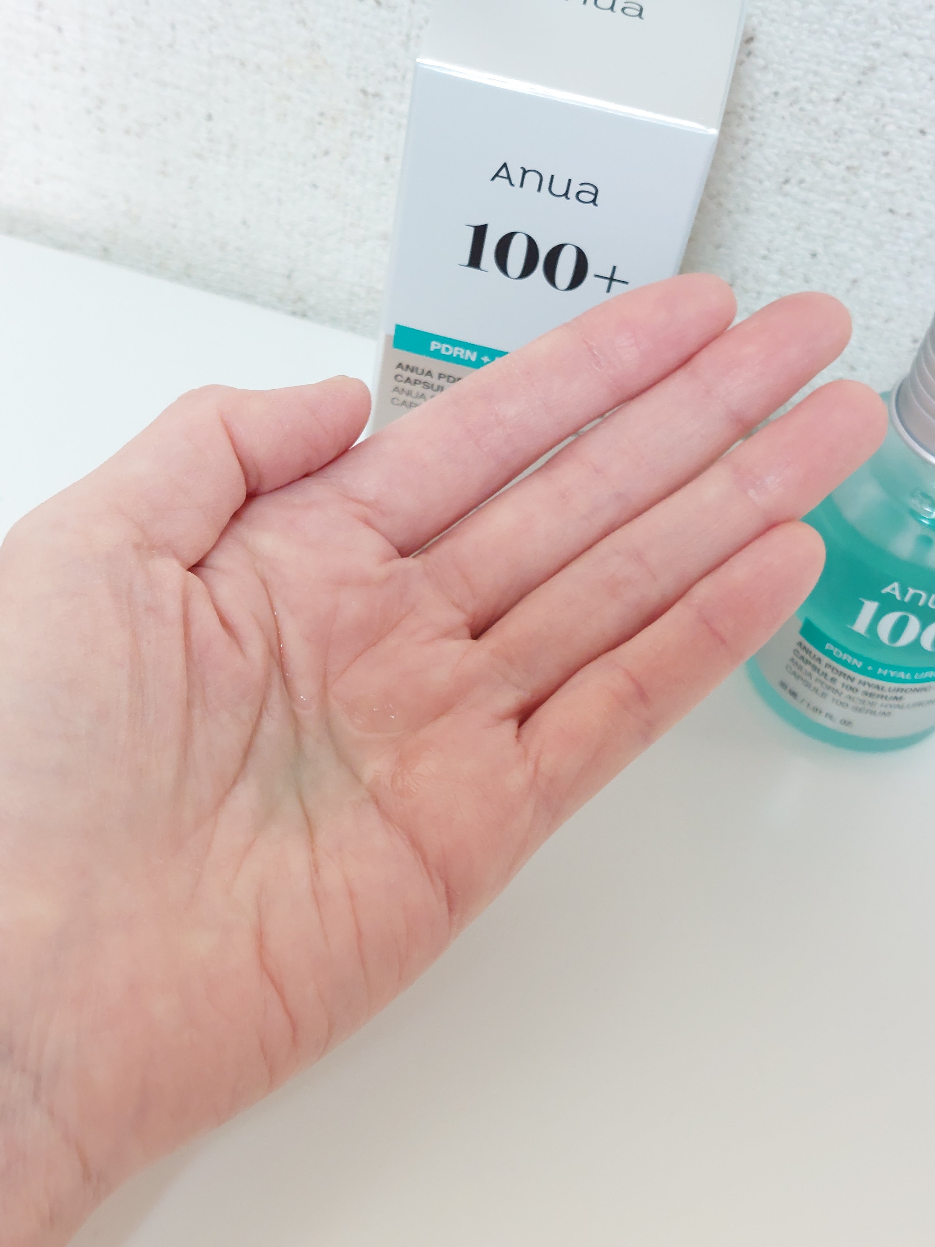 PDRN×ヒアルロン酸×コラーゲンでしっとりした弾力のある肌へ。 クリアボトルに水色の印象的な美容液。グリーンのアゼライン酸美容液を購入して持っているので並べると可愛い♡ 意外にさらっとしたテクスチャー。手を傾けると流れてきます。それでもお肌に馴染ませるとしっとりした使い心地!
