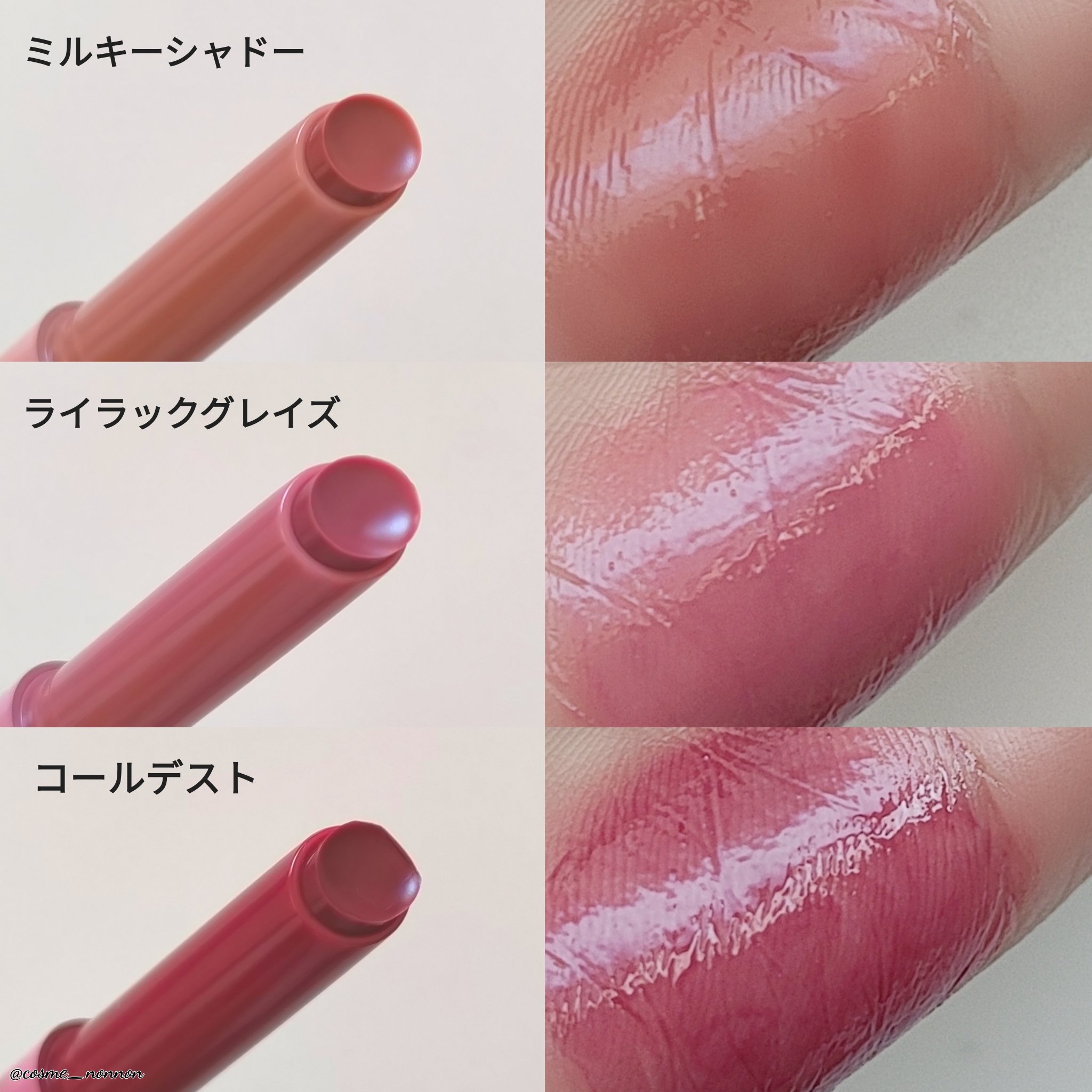 - 光の反射でツヤめく、ちゅるんリップ 似合わせ発色。溶け込むように馴染む ■いろんな角度から光を集め、ツヤ感あふれる唇へ スティックなのにグロスのような光沢感とツヤ感を演出。 キューピッドシャインのツヤで唇に自然なちゅるん感を。 ■自然に彩る似合わせ発色。重ねてさらに自分好みに 透け感がある色味で、”元から感”を演出。だからパーソナルカラーを問わず好きな色を選べる。 2色重ねても美発色。だからグラデしやすい。