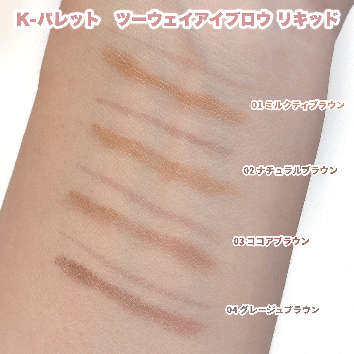 K-パレットの1DAY TATTOOアイブロウシリーズがリニューアル発売‼️ 2025年2月6日(木)〜 (*2025年1月21日(火)一部企業先行発売) リキッドで足してから、ペンシルとパウダーの2本使いで仕上げるのが個人的にお気に入り🩷 カラー共通 01 ミルクティブラウン 02 ナチュラルブラウン 03 ココアブラウン(動画使用カラー) 04 グレージュブラウン