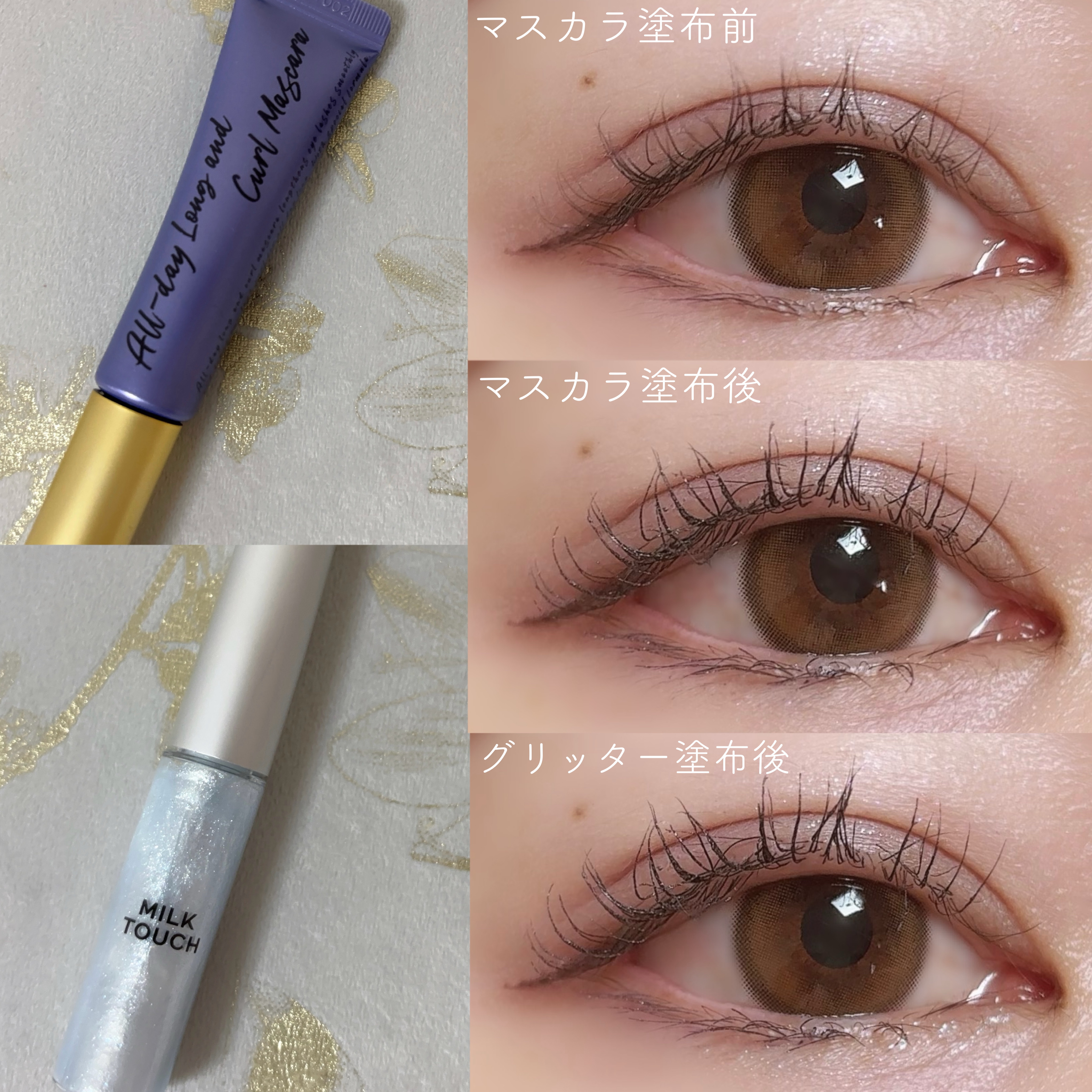 ホリデーメイクにぴったりのオーロラリップはオーロラの輝きとぷっくり感で角度によって変わる多色グリッター🤍 深い夜空に輝く光のようなネイビー×ラメ マスカラはニュアンスカラーで抜け感のある目もとに🫧 アイグリッターはブルーベースのラメでみずみずしく透明感をプラス。繊細なラメがキラキラ輝き涙袋に塗るとうるうる感が可愛い🫶🏻