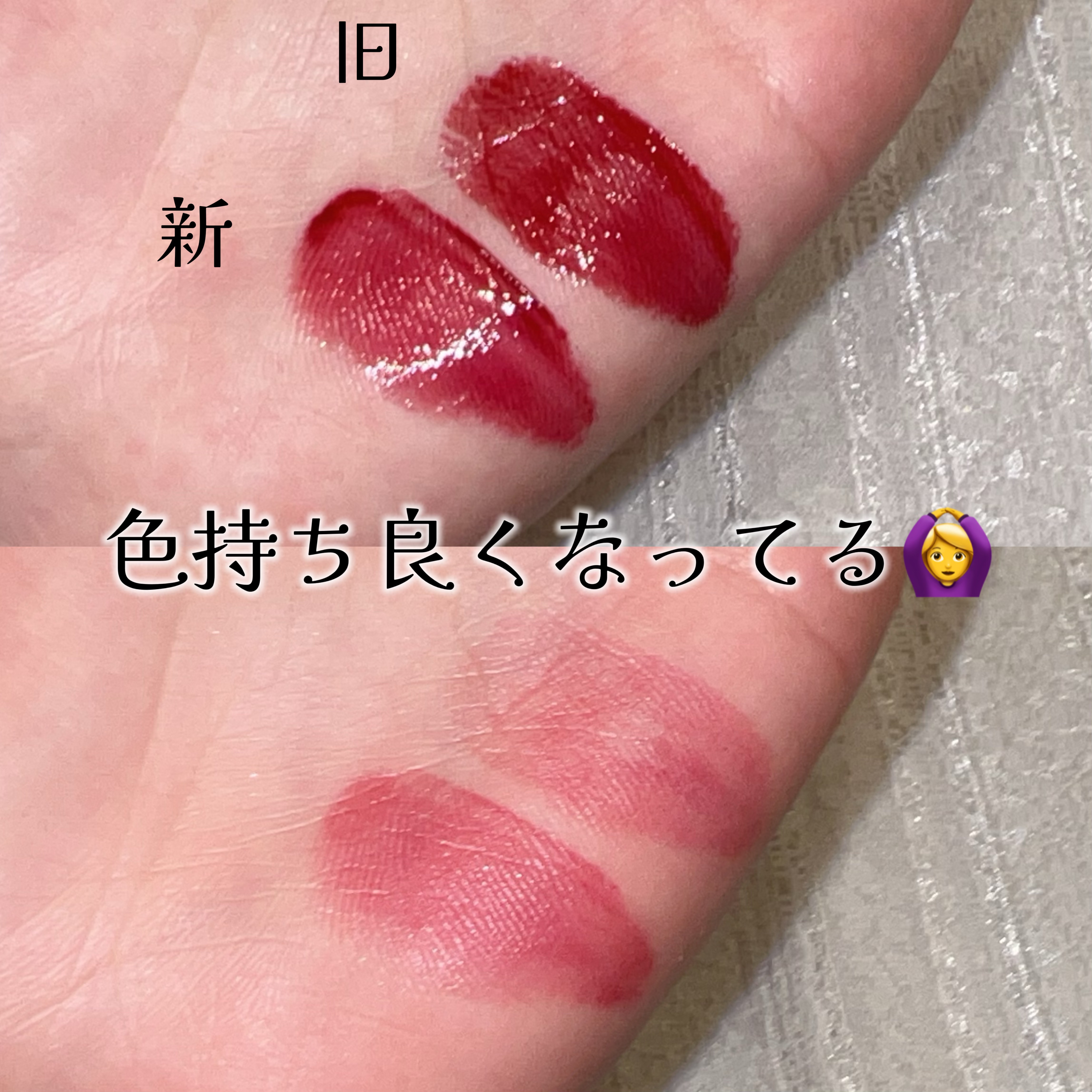 新パケはちゅるんとタンフルみたいで可愛い♡ ただ、チップがめちゃくちゃ私的に残念だった😢 比較カラーはBARE GRAPE! 同じ量をとれば発色もツヤ感も同じ仕上がり! チップは残念だったけど、改めて可愛いと思ったからまたたくさん使いたい!