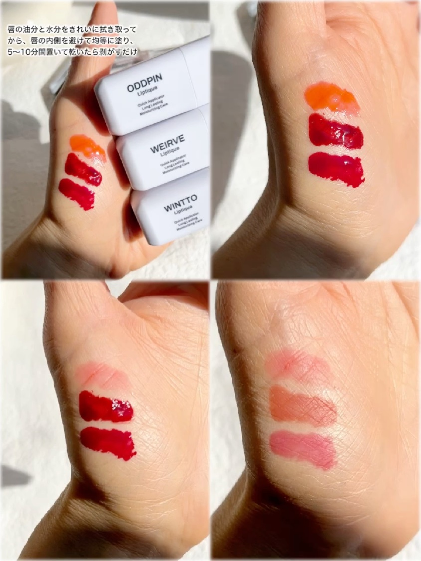 なんと塗って剥がすだけで24時間持続するという不思議なリップ💓 テクスチャーはこっくりとした硬めのジャムのようは感じ!上手く塗れなくても大丈夫でしたよ🙆♀️ Liptique、Lip glow Oilともにプランピング効果があり、ぷっくり女性らしい唇になりますよ💋