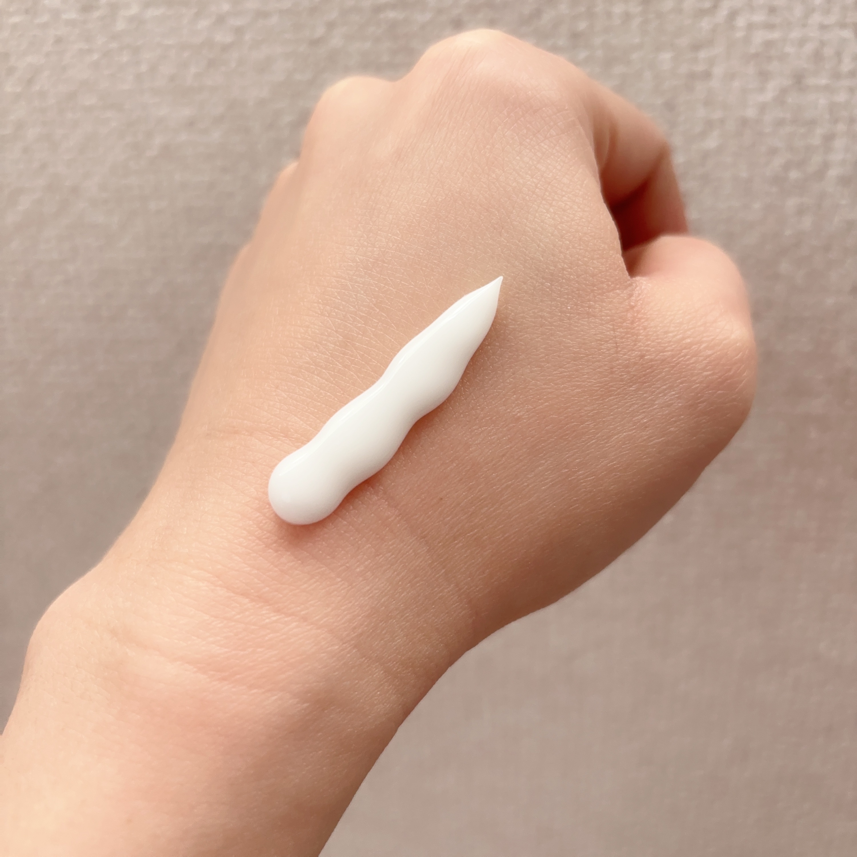日焼け止めジェルと書かれているのですが、クリームのようなこっくりとしたテクスチャーでした! 日焼け止めなのにしっとりとした使い心地で、わたしはとても好みでした🥰✨ べたべたしないし、白浮きもしないので1年中使いやすそう! 香りは少ししますが、わたしは気にならなかったです💡 顔や身体にも使えますし、持ち運びにも便利なサイズ感なので、出かけ先でも使っています❤︎