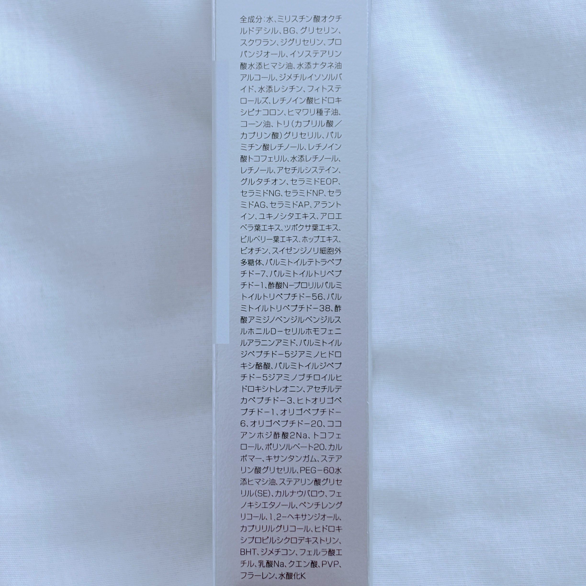 - <レチノショット 0.1> 水、ミリスチン酸オクチルドデシル、BG、グリセリン、スクワラン、ジグリセリン、プロパンジオール、イソステアリン酸水添ヒマシ油、水添ナタネ油アルコール、ジメチルイソソルバイド、水添レシチン、フィトステロールズ、レチノイン酸ヒドロキシピナコロン、ヒマワリ種子油、コーン油、トリ(カプリル酸/カプリン酸)グリセリル、パルミチン酸レチノール、レチノイン酸トコフェリル、水添レチノール、レチノール、アセチルシステイン、グルタチオン、セラミドEOP、セラミドNG、セラミドNP、セラミドAG、セラミドAP、アラントイン、ユキノシタエキス、アロエベラ葉エキス、ツボクサ葉エキス、ビルベリー葉エキス、ホップエキス、ビオチン、スイゼンジノリ細胞外多糖体、パルミトイルテトラペプチド-7、パルミトイルトリペプチド-1、酢酸N-プロリルパルミトイルトリペプチド-56、パルミトイルトリペプチド-38、酢酸アミジノベンジルベンジルスルホニルD-セリルホモフェニルアラニンアミド、パルミトイルジペプチド-5ジアミノヒドロキシ酪酸、パルミトイルジペプチド-5ジアミノブチロイルヒドロキシトレオニン、アセチルデカペプチド-3、ヒトオリゴペプチド-1、オリゴペプチド-6、オリゴペプチド-20、ココアンホジ酢酸2Na、トコフェロール、ポリソルベート20、カルボマー、キサンタンガム、ステアリン酸グリセリル、PEG-60水添ヒマシ油、ステアリン酸グリセリル(SE)、カルナウバロウ、フェノキシエタノール、ペンチレングリコール、1,2-ヘキサンジオール、カプリリルグリコール、ヒドロキシプロピルシクロデキストリン、BHT、ジメチコン、フェルラ酸エチル、乳酸Na、クエン酸、PVP、フラーレン、水酸化K