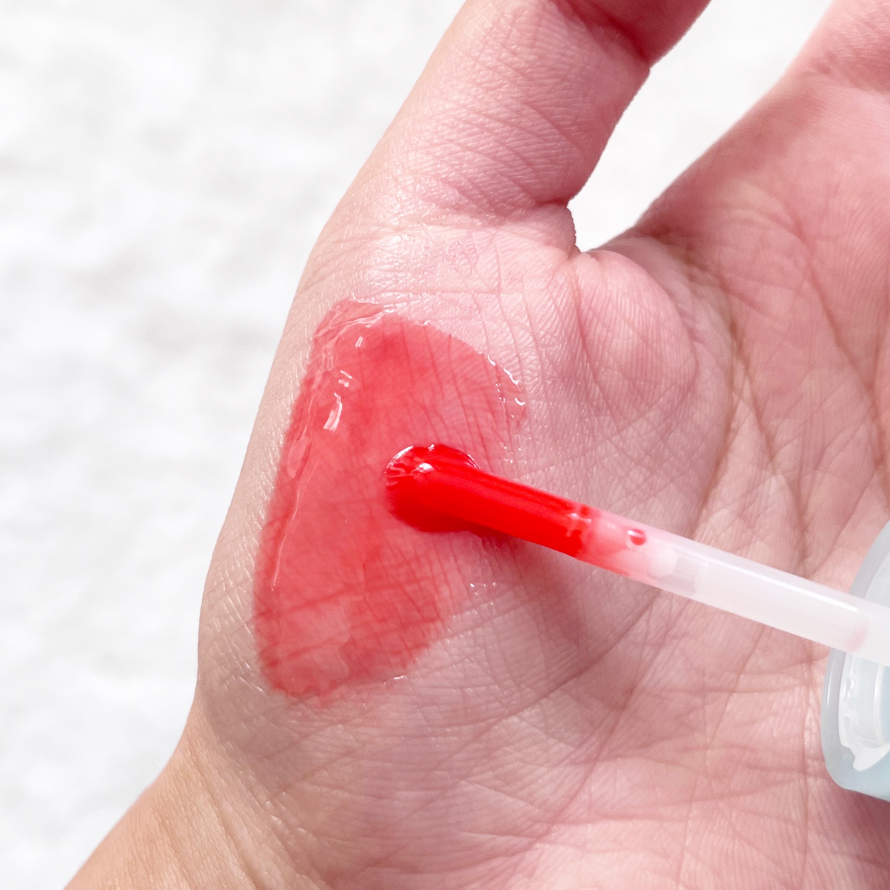 つけた瞬間から発色がよくぷるぷるの唇に! 時間が経っても光沢維持してる💖 プラピング効果があるので唇がぷっくり ティッシュオフしても残ってくれる。 7種類のカラーバリエーションなので好きな色に出会えるかも🫶🏻