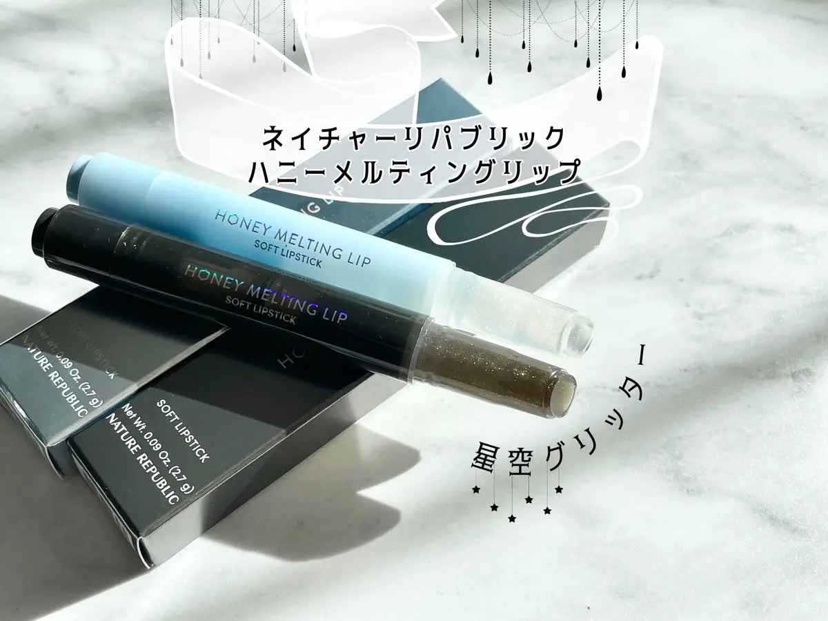 キラキララメが可愛いこのリップ ほんのりプランパー効果もあってベタつかずに唇を潤ってくれるの✨ 🖤は唇のphや温度差に反応して自分だけのカラーに💕 ハニーメルティングリップ 🩵15 クリスタルスパークル 🖤16 ミッドナイトスパークル
