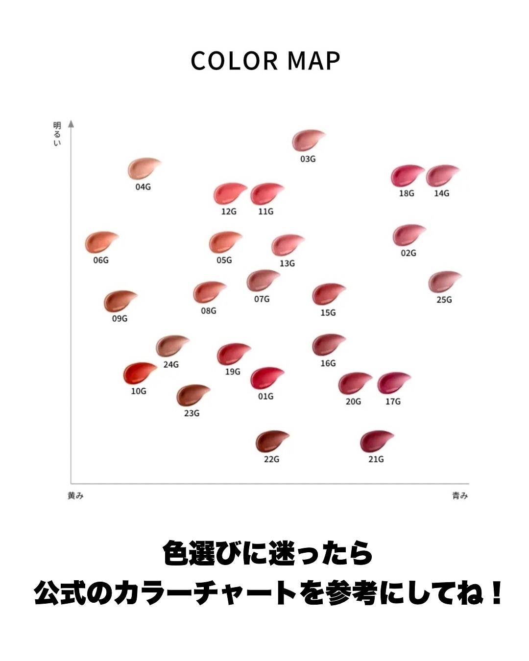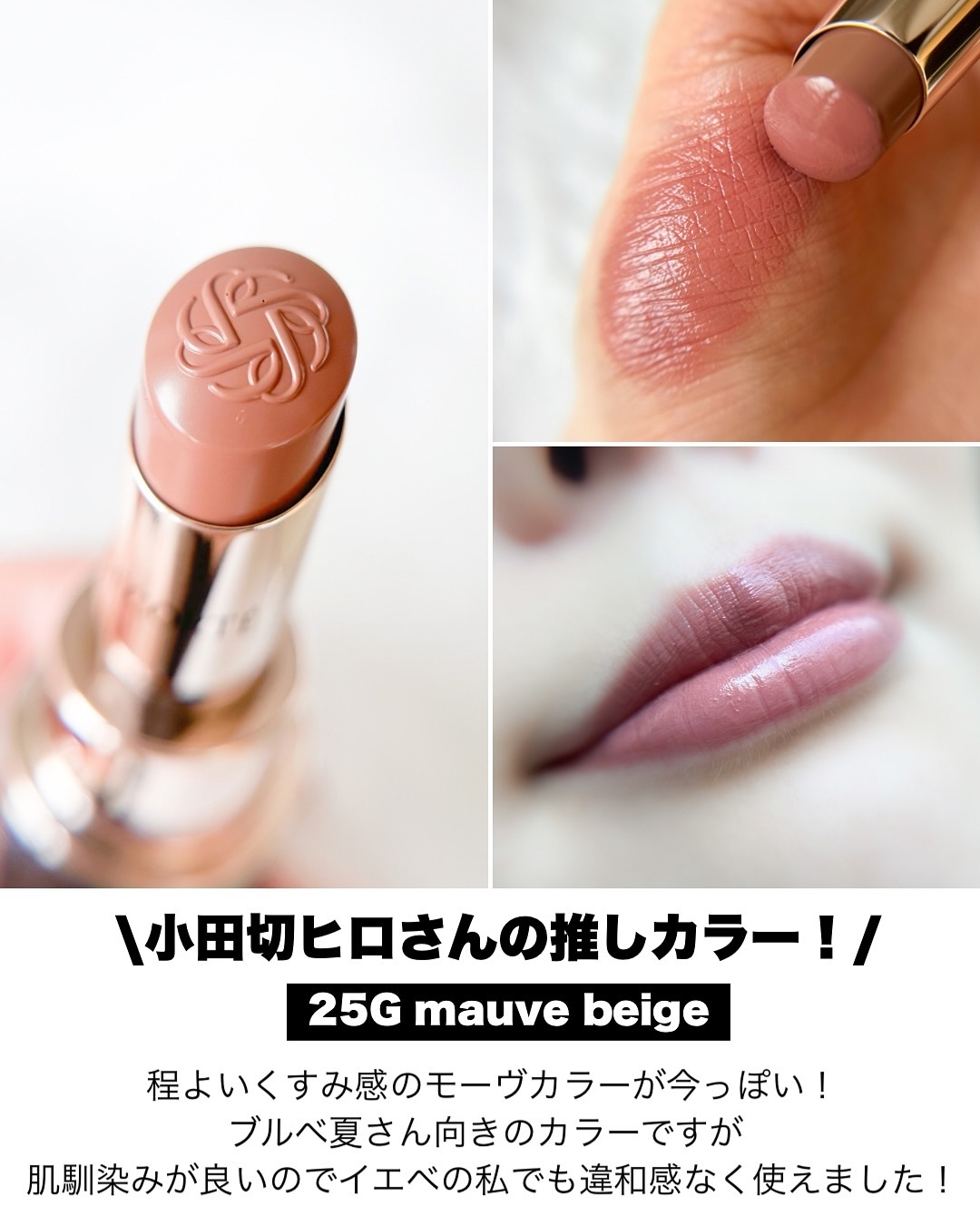 リップは保湿力を重視する・色持ちの良いリップを探している わたしが選んだ25Gは小田切ヒロさん推しでもあるそう! 紹介されてから即完売したらしいので即決してよかった😂