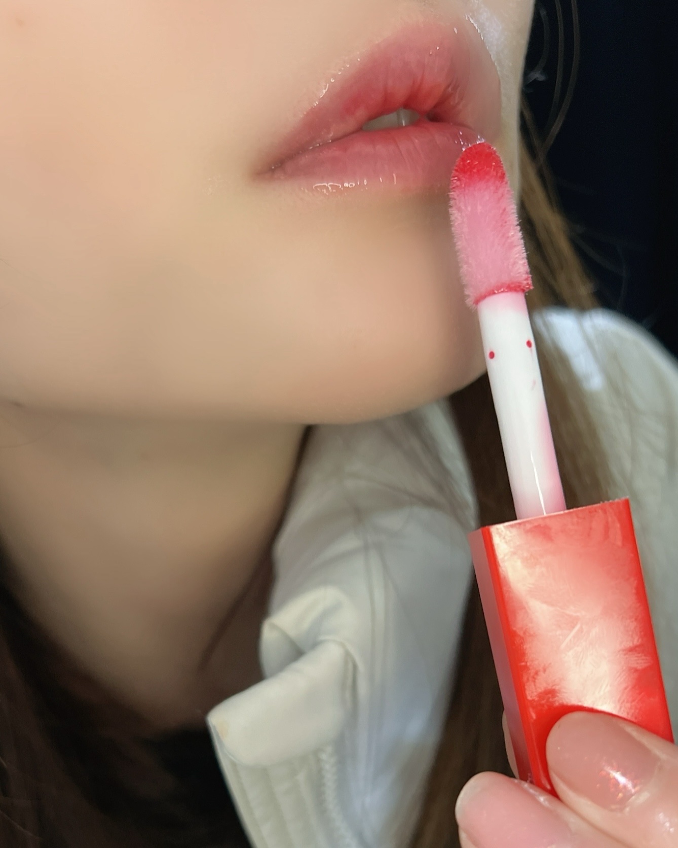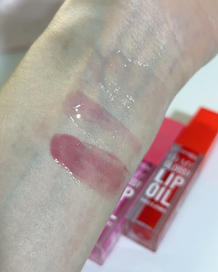 リンメルのリップオイル、ちゅるん唇が演出できるの💗 むっちり厚みのあるテクスチャー💭でもベタッとしすぎないところが好き👏🏻愛用中の01はスイカの香りでほんのりピンク発色!!!🍉 チップも大きめで塗りやすくて最高です🥹💗👏🏻
