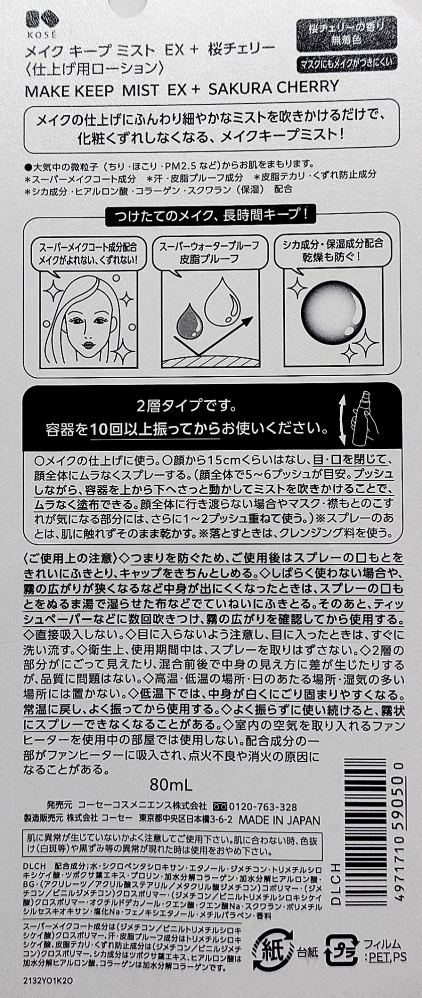 商品詳細情報コーセーコスメニエンス メイク キープ ミスト EX + 桜チェリー