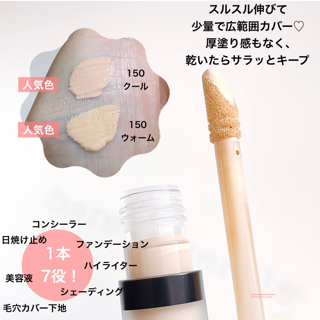 1本で7役を果たす、マルチ コンシーラー「コンシーラー」「ファンデーション」「ハイライター」「シェーディング」「毛穴カバー下地」「美容液」「日焼け止め」と7つの用途で使用できます🥹 伸びも良く使いやすい使用感でした。ハイライターやシェーディングなどカラーを変えれば悩み別に使いやすそうだと思いました。 ベストコスメ*多数受賞!