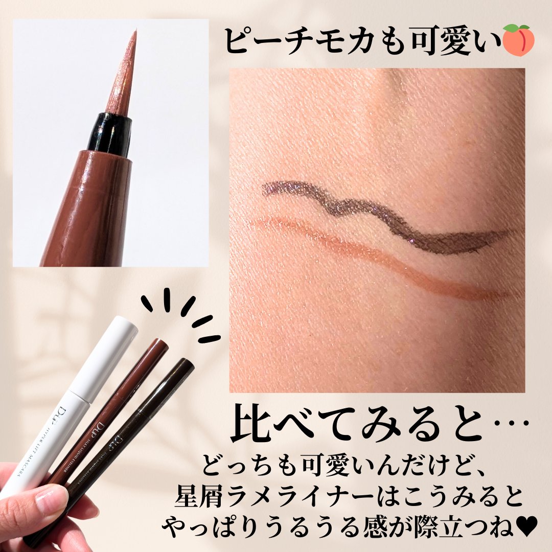 D-UPシルキーリキッドアイライナーに新色〖スターダストブラウン〗が登場.ᐟ💫 シルバーや青のラメが星屑のように輝くブラウンのラメライナーです✧˖° ラメ感が繊細でさりげなくキラッと輝くので、デイリーにもかなり取り入れやすい.ᐟ カラーはナチュラルなブラウンでどんなメイクにも合わせやすいです◎ カールマスカラだけど長さにもこだわった“すご伸びカール”マスカラ。ファイバー入りでしっかり長さが出て、カールも1日下がらずキープされる...!