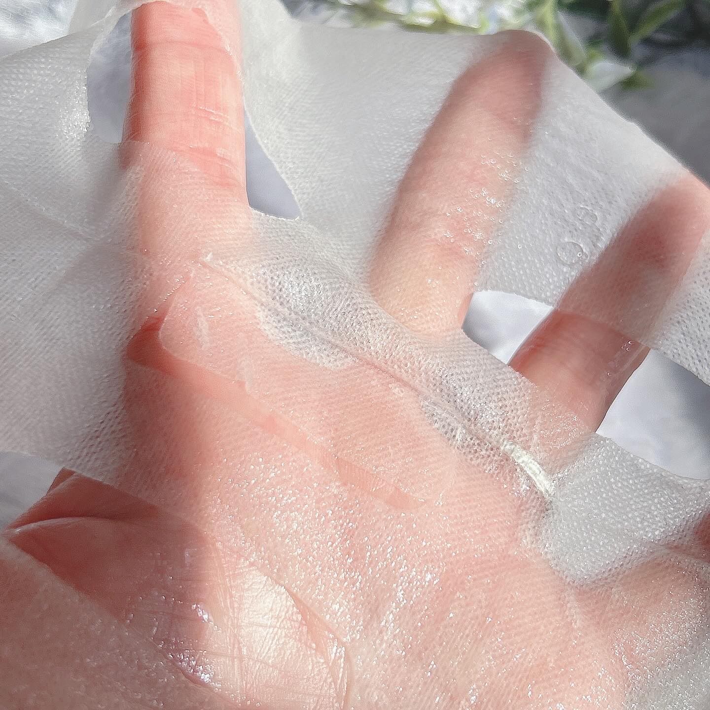 化粧水代わりに使えるので、朝の忙しい時にも便利✨ 時短アイテムとして重宝しています♡♡ うるおい成分として、海藻エキスを配合。お肌を守るフィルムを形成し、保湿することで皮脂と水分のバランスを整えてくれます。 シートは厚めでふんわり♡美容液をしっかりと含んでくれています。 トゥルンとしたシートで柔らかくて使い心地もヨキ♡