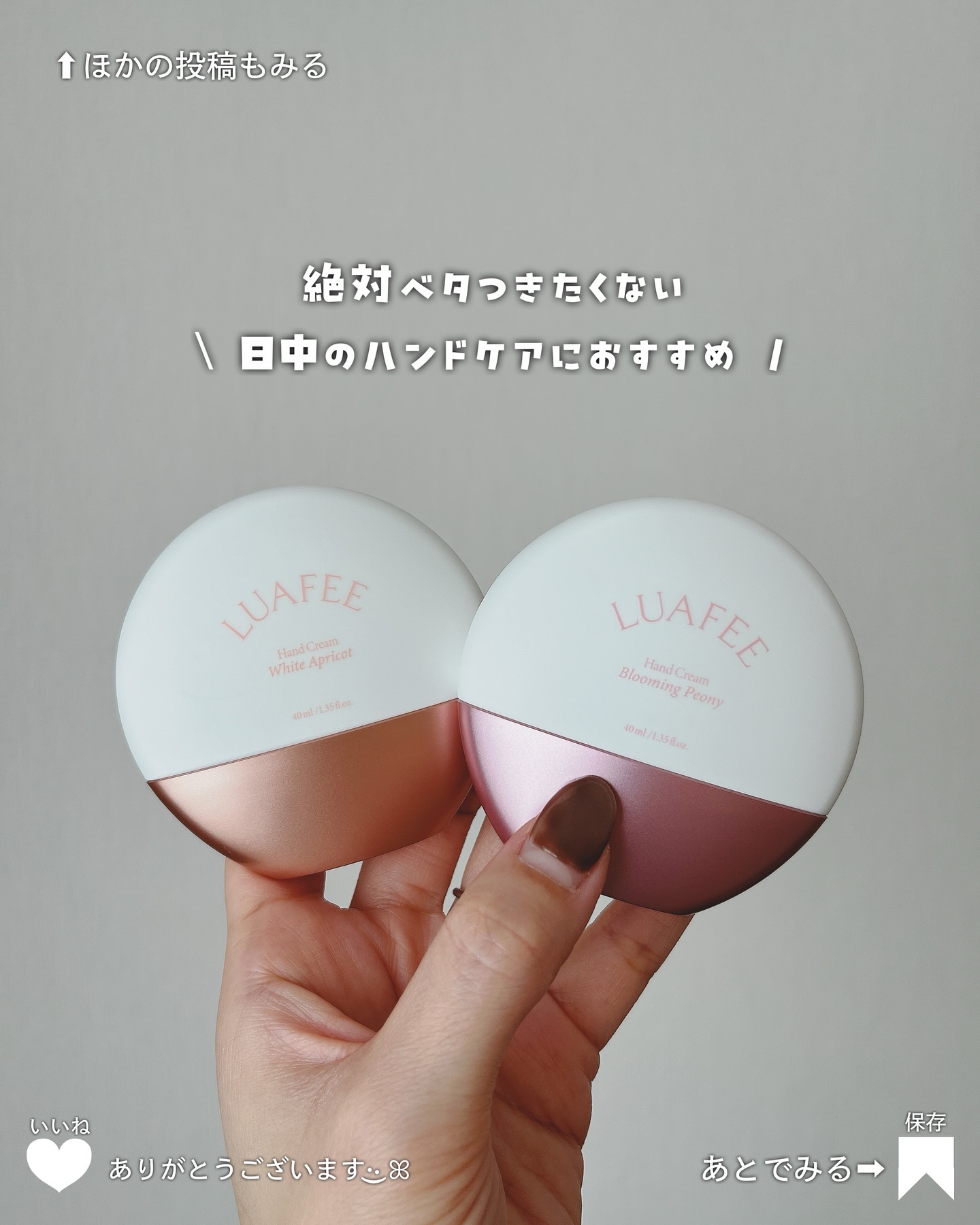 コロンとしたフォルムが可愛い🩷パケの可愛さと香りがpoint❣️ 香りは好みがあるけど私はホワイトアプリコット香りを気にする方はブルーミングピオニー さっぱりベトつかないすぐスマホいじれるよ!