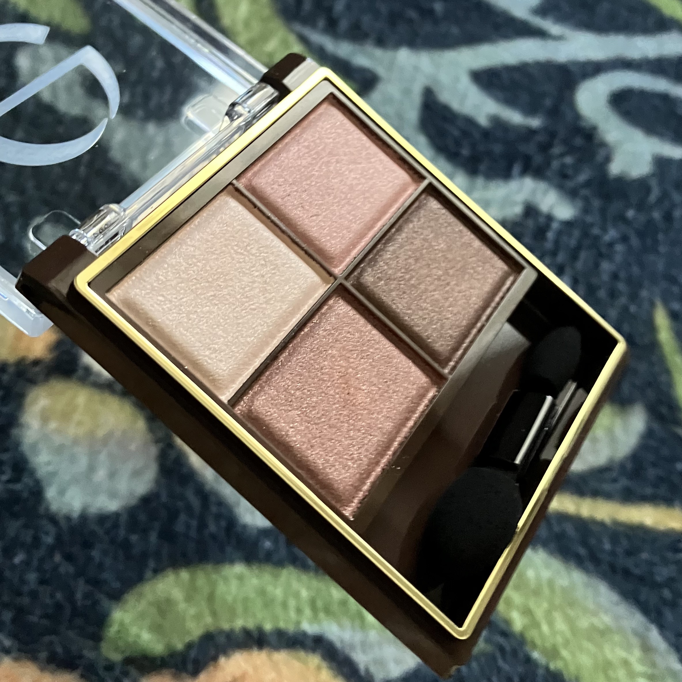 持ってる他のCEZANNEのアイシャドウはわりと甘い仕上がりになるものが多かったけれど、これは黄みが強くて淡いブラウンとシックなシャンパンベージュ、鮮やかな赤の組み合わせがまさにアンティークで大人っぽい仕上がりになる。 右上のシマーベージュが意外に煌めきが強くてハイライトとして使える。 右下の赤はかなり高発色。そのままでアンダーラインを引くと血色感が出て可愛いし、左下のブラウンと混ぜて涙袋の影にすると自然になって良かった。 右下の赤以外はどれも肌馴染みの良い色で他のアイシャドウと組み合わせても上手く決まるから汎用性高い。
