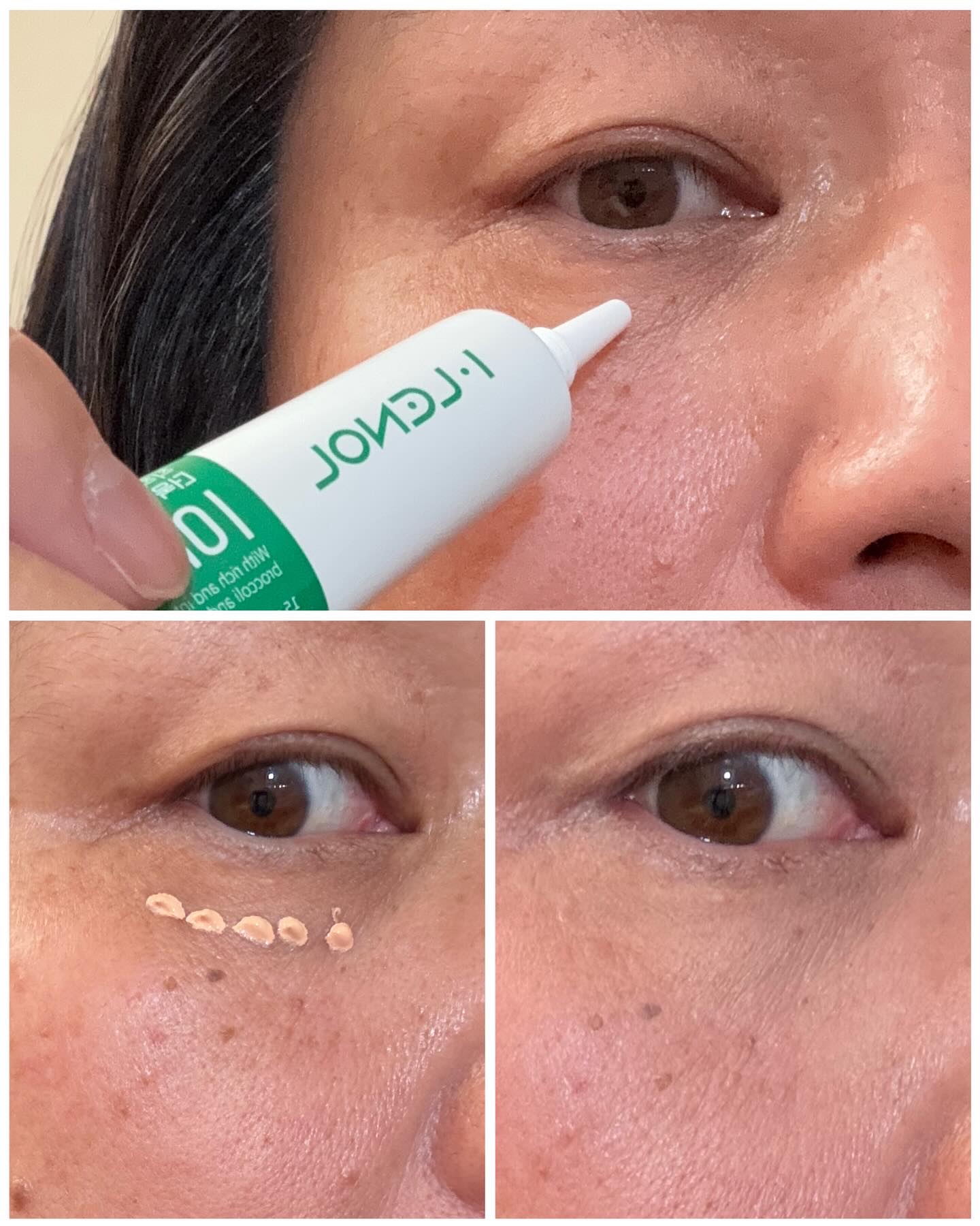 しっとりとしたクリームテクスチャーで少しの量でOK!スルスル〜っと伸びが良いです アイクリーム + コンシーラーなので気になる目元のアイケアもできスキンケアしながらメイクアップベースもしている感じです 保湿 + 美白 + シワ改善の機能性化粧品ナイアシンアミドやアデノシン配合