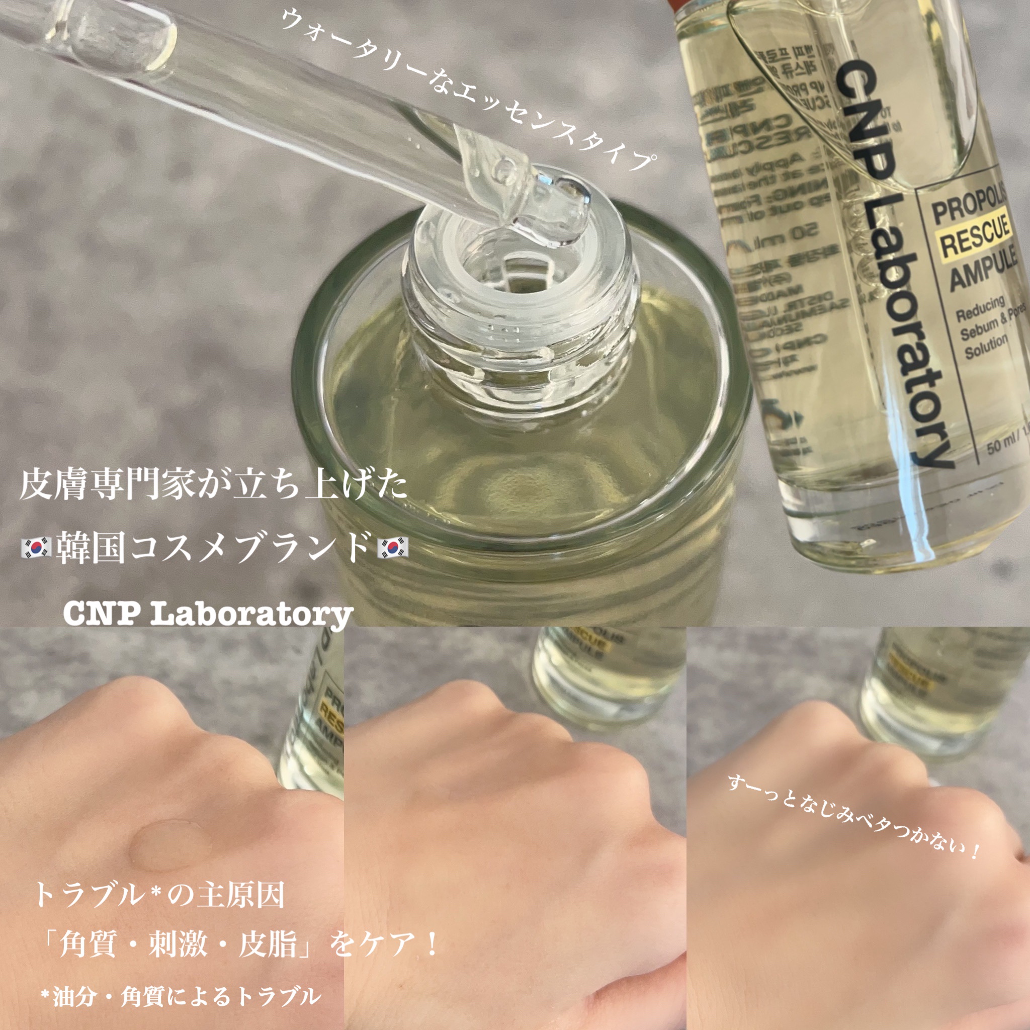 - 整肌作用に特化したプロポリスで保湿・毛穴ケア・皮脂ケア・肌荒れ予防まで乾燥によるお肌の悩みをすべてケア ・整肌成分プロポリス・ナイアシンアミド・保湿成分ベビーヒアルロン酸配合により、整肌や肌荒れ予防においてソリューションを提供するレスキューアンプル ・IP-BHA成分により皮脂ケア(角質ケア成分) ・4種の整肌成分による肌荒れ予防 ・皮脂バランスを整える ・乾燥や皮脂により毛穴が目立つ肌のケア ・乾燥などの外部刺激により敏感になったお肌を素早く整肌ケア